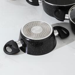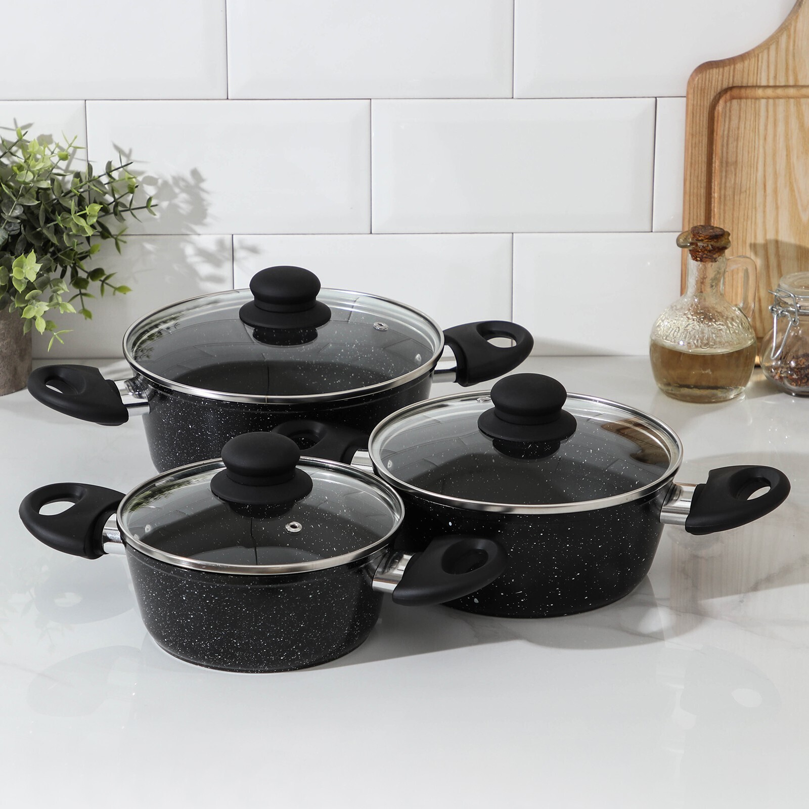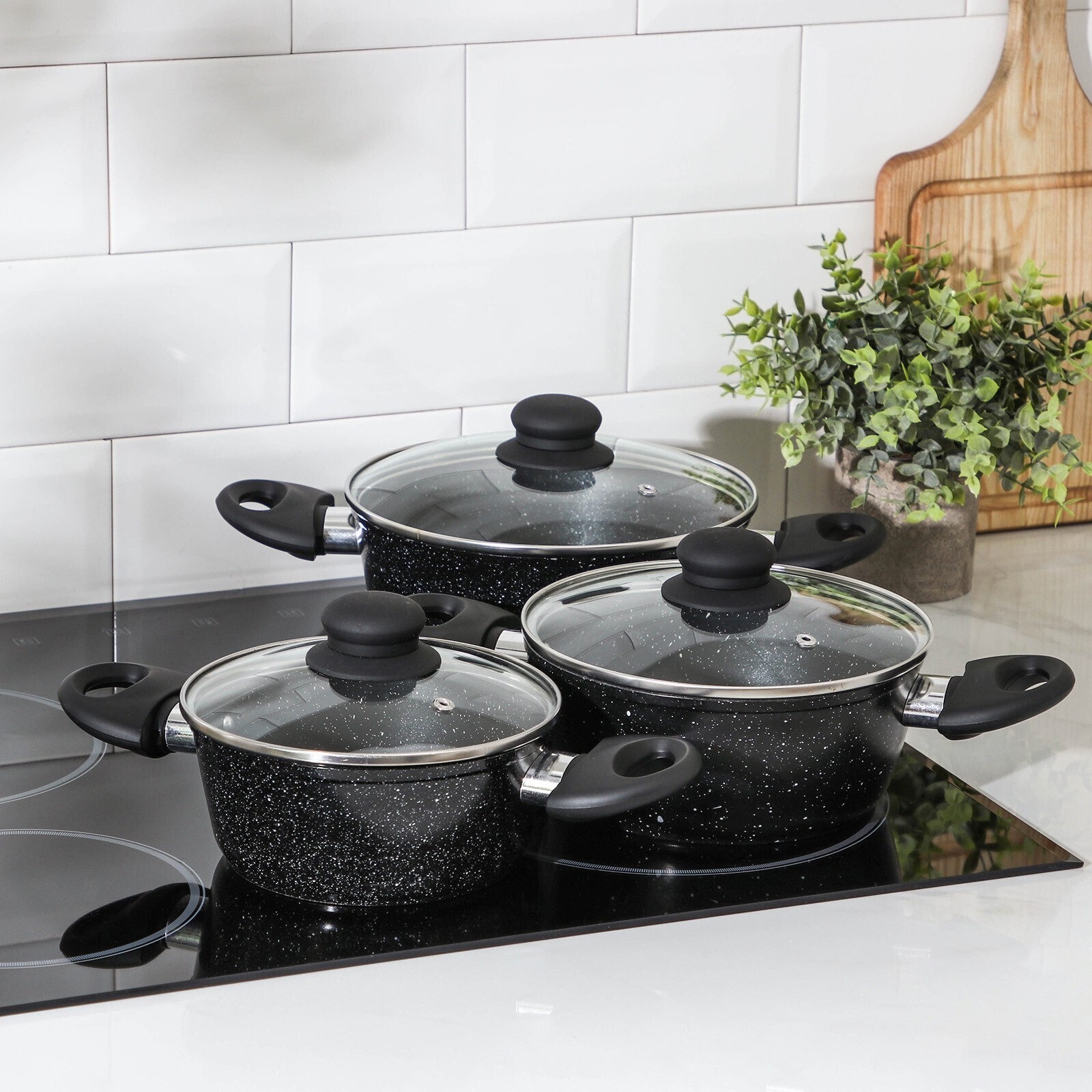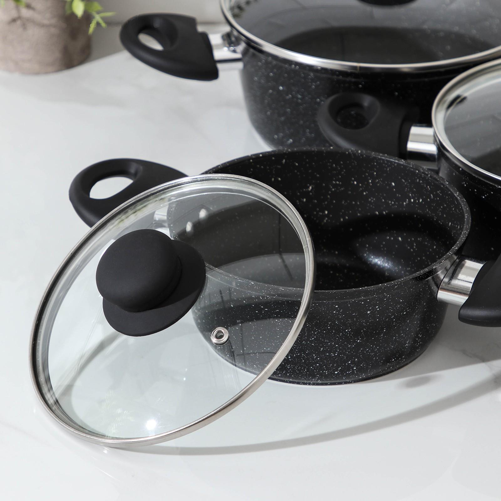 Набор кастрюль, 3 предмета: 1 л, 1,5 л, 2 л, стеклянные крышки, индукция, антипригарное поктрытие, цвет чёрный