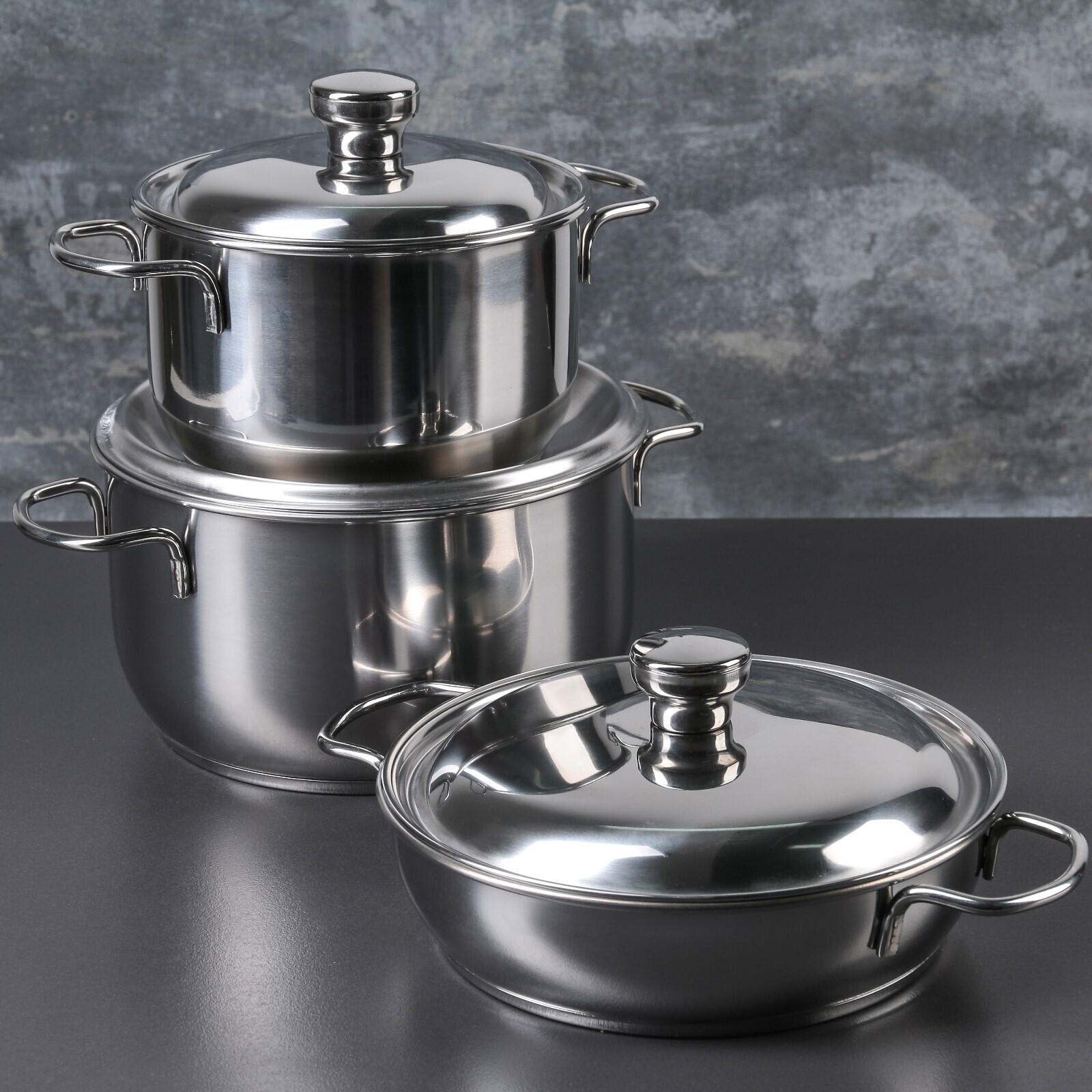 Набор посуды, 3 предмета: две кастрюли 3 л, 1,75 л, сковорода 1 л, капсульное дно, металлические крышки