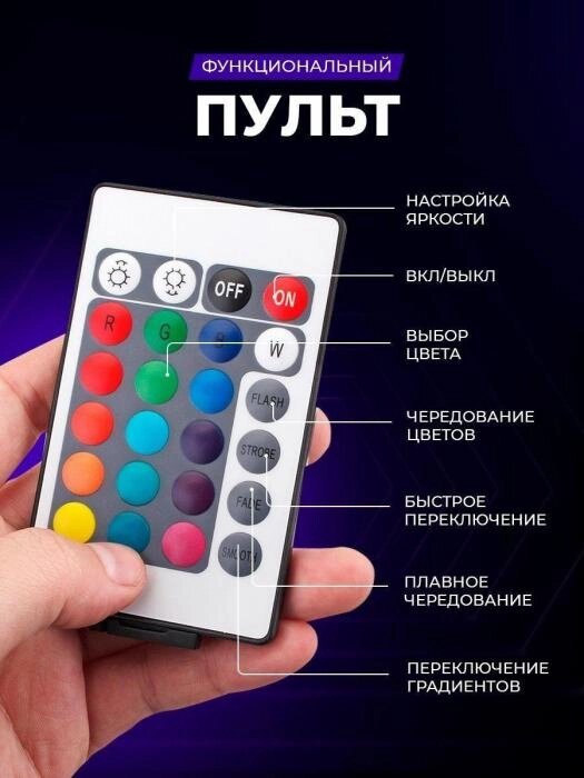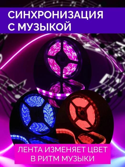 Cветодиодная лента с пультом неоновая подсветка RGB led многоцветная 10 метров