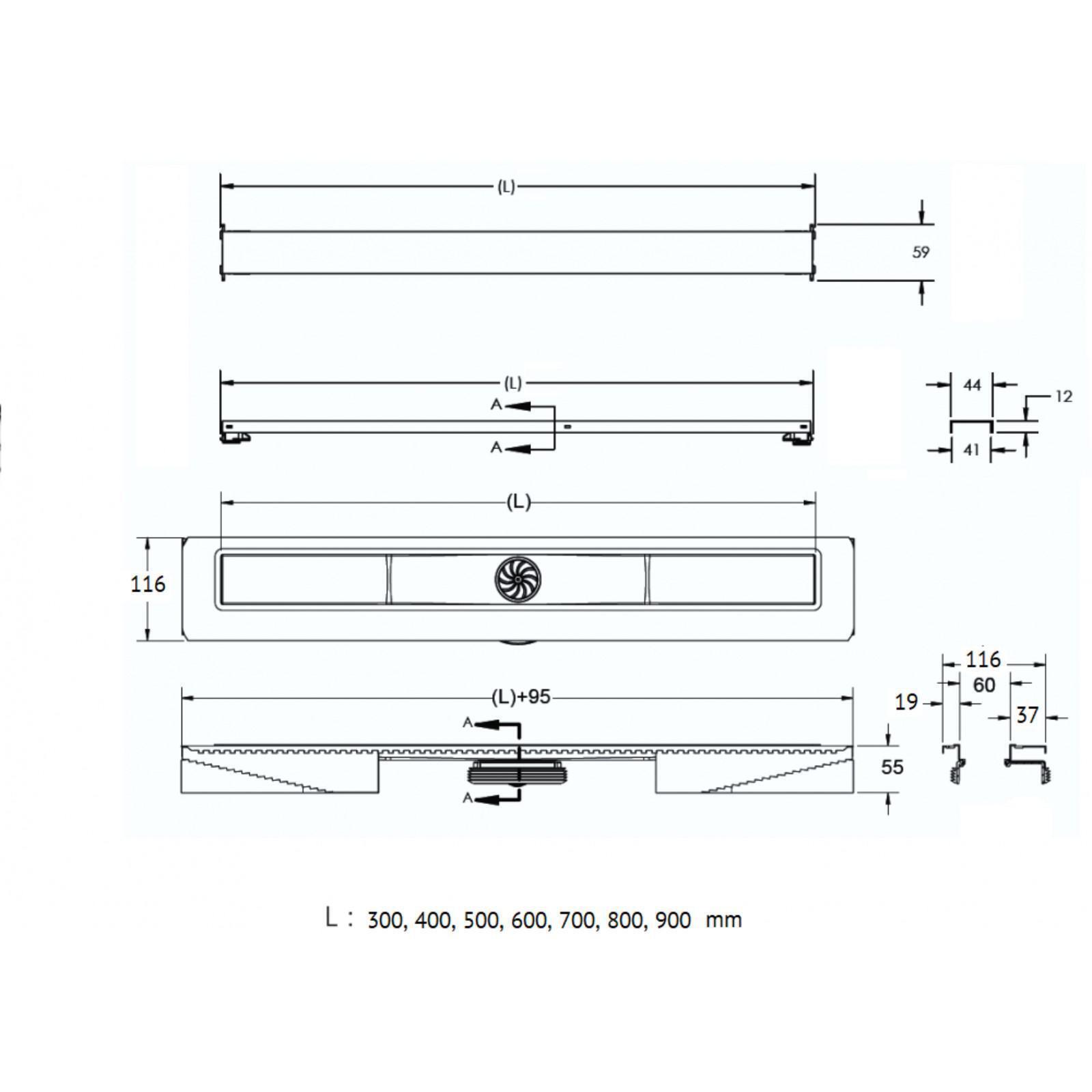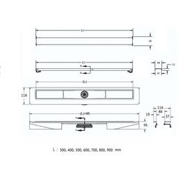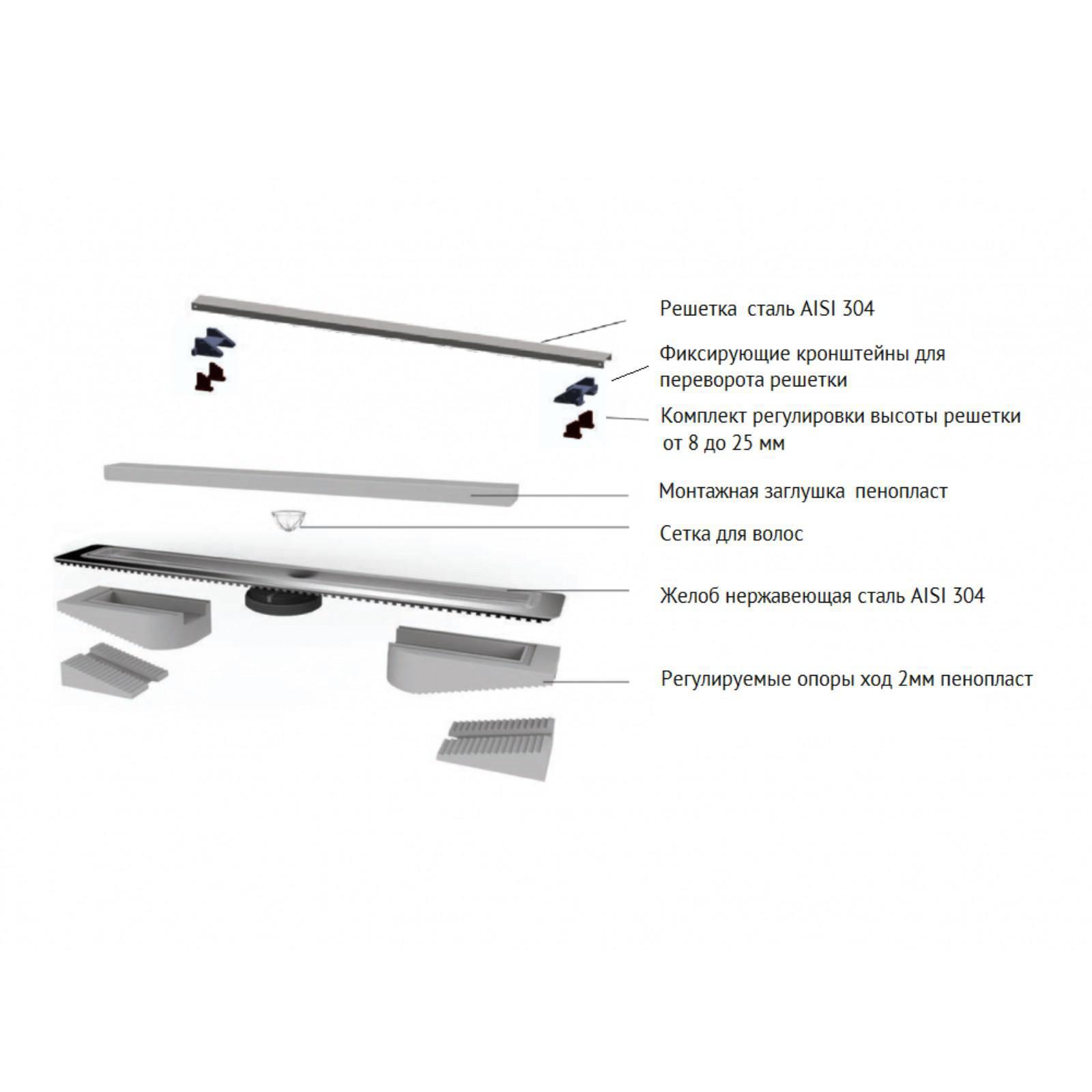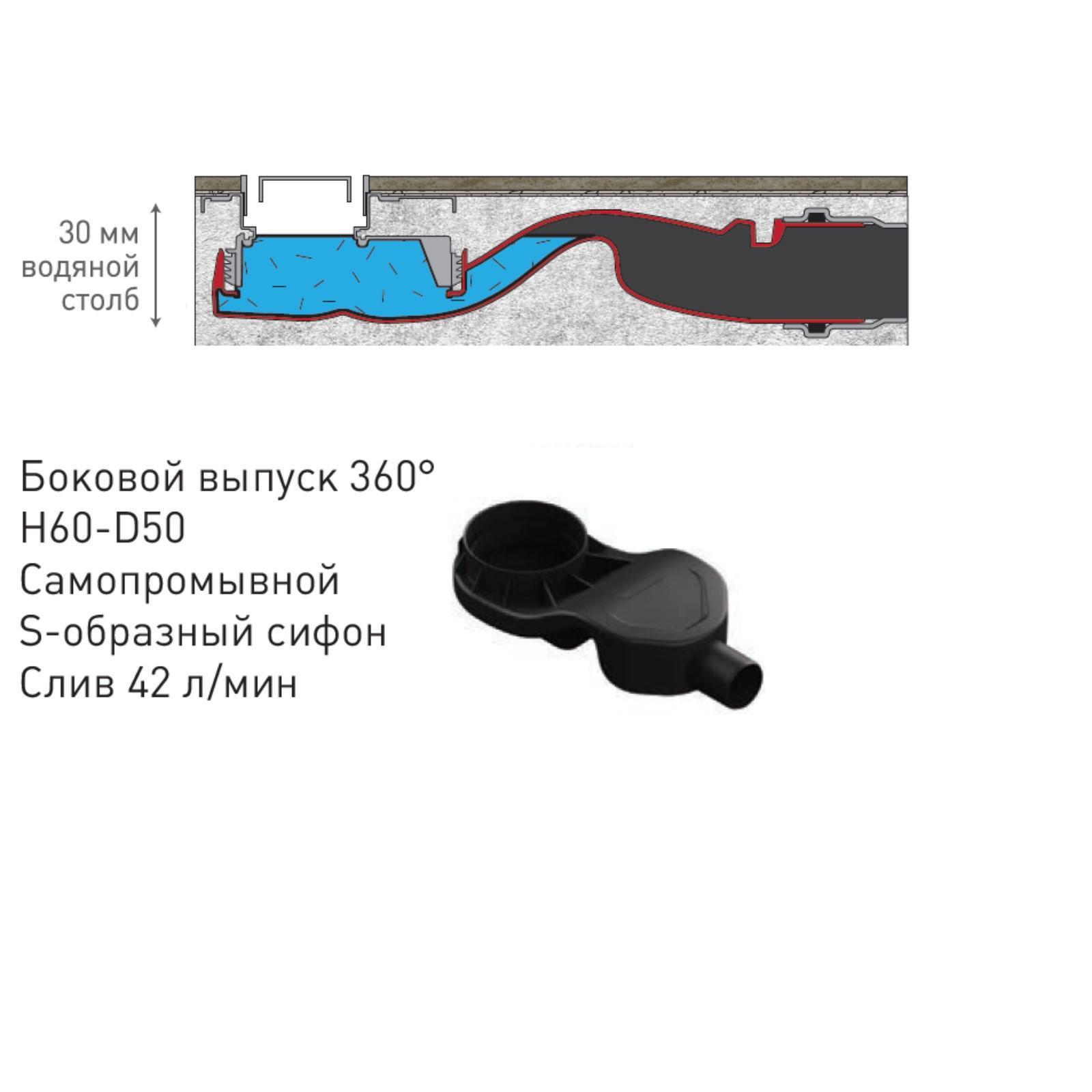 Трап BERGES C1 Norma 800, d=50 мм, 800 x 60 мм, линейный, боковой выпуск, черный матовый