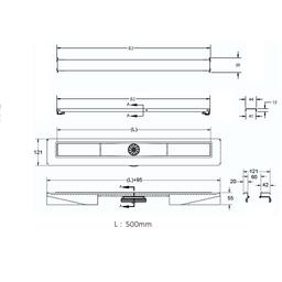 Трап BERGES C1 Norma 500, d=50 мм, 500 x 60 мм, линейный, боковой выпуск, матовый хром