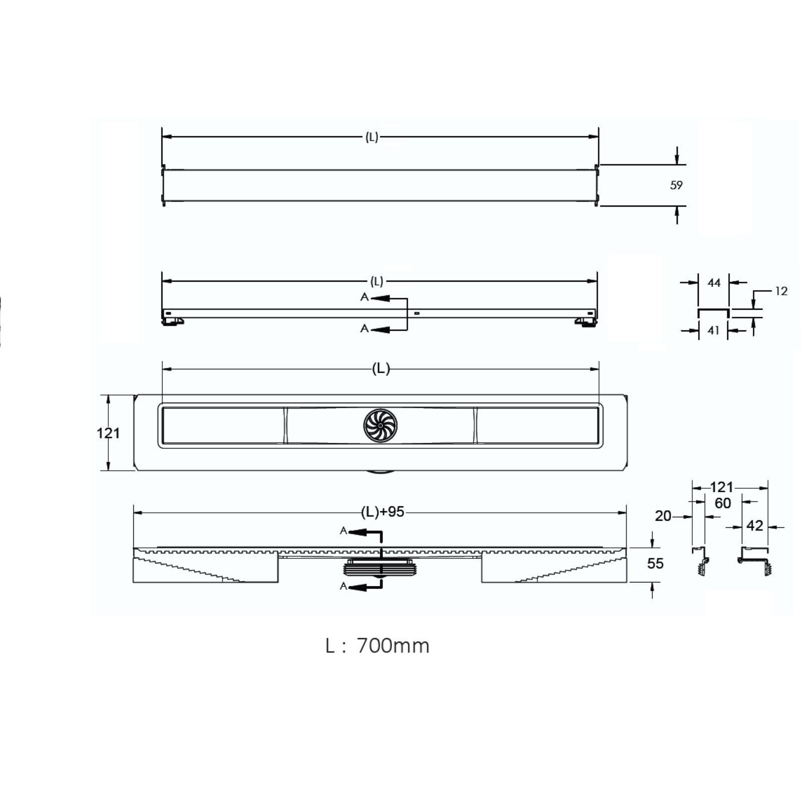 Трап BERGES C1 Norma 700, d=50 мм, 700 x 60 мм, линейный, боковой выпуск, матовый хром