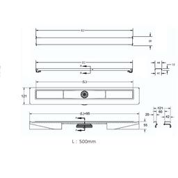 Трап BERGES C1 Brise 500, d=50 мм, 500 x 60 мм, линейный, боковой выпуск, матовый хром