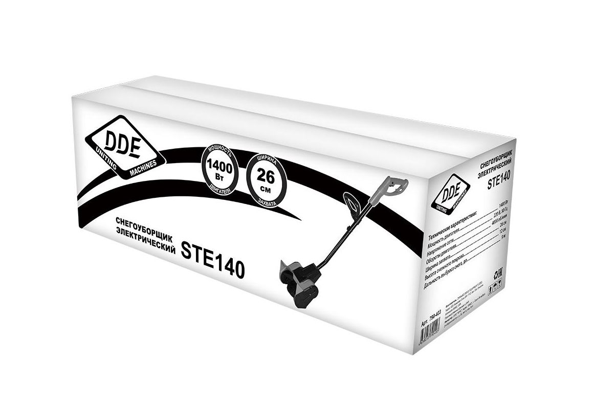 DDE STE140 – электрический снегоуборщик для очистки парковок, придомовых, садовых дорожек и т.д. Мощность 1400 Вт. Убирает наносы высотой до 120 мм.