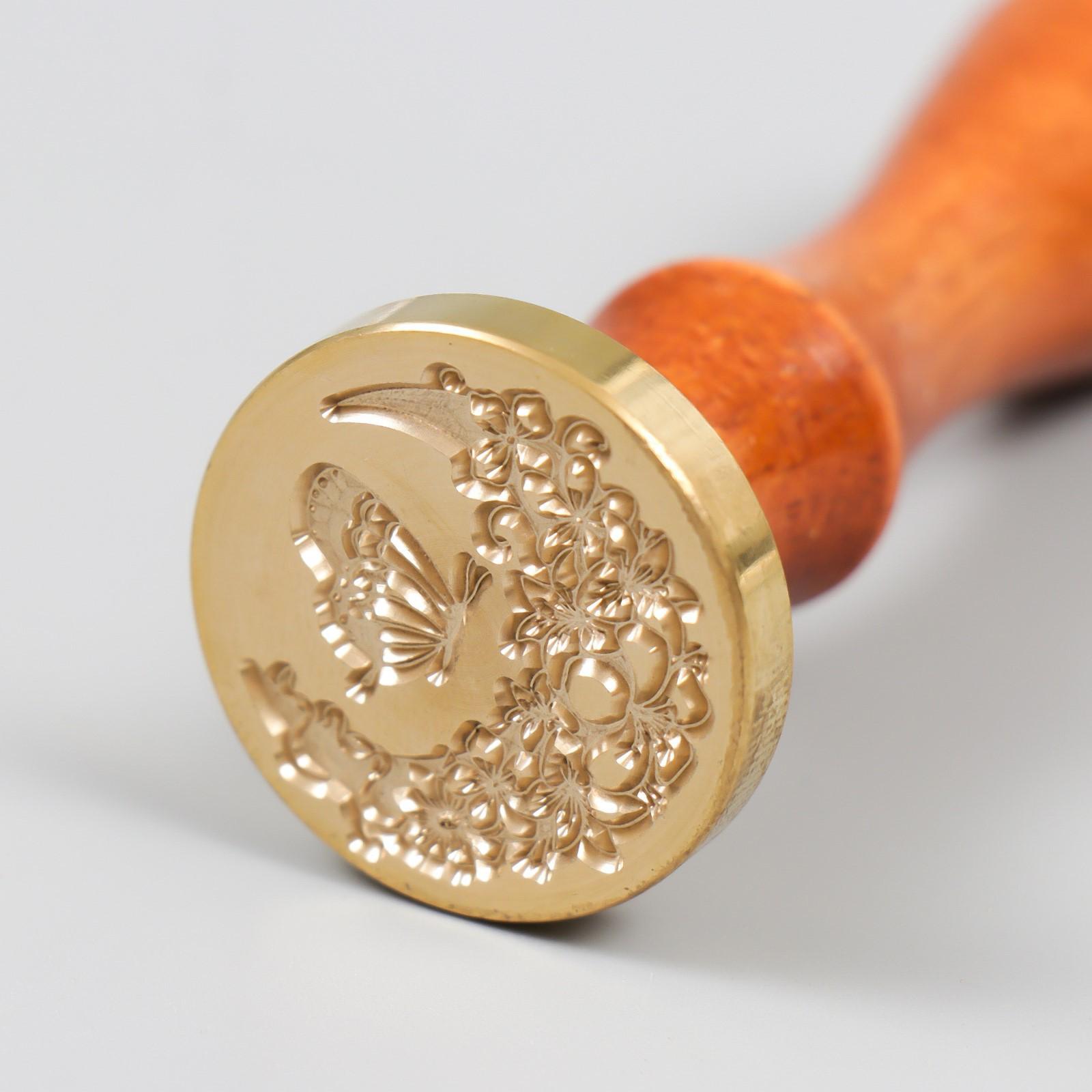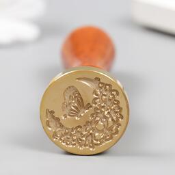Печать для сургуча с деревянной ручкой "Бабочка в цветах" 3х3 см