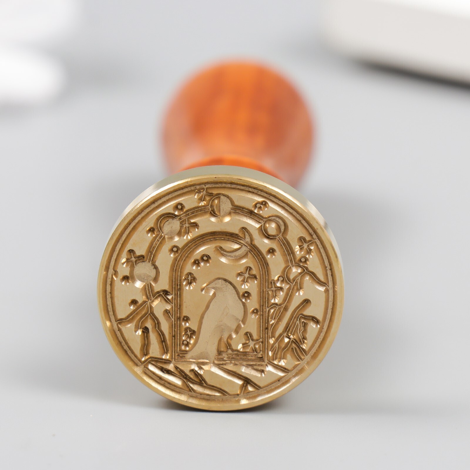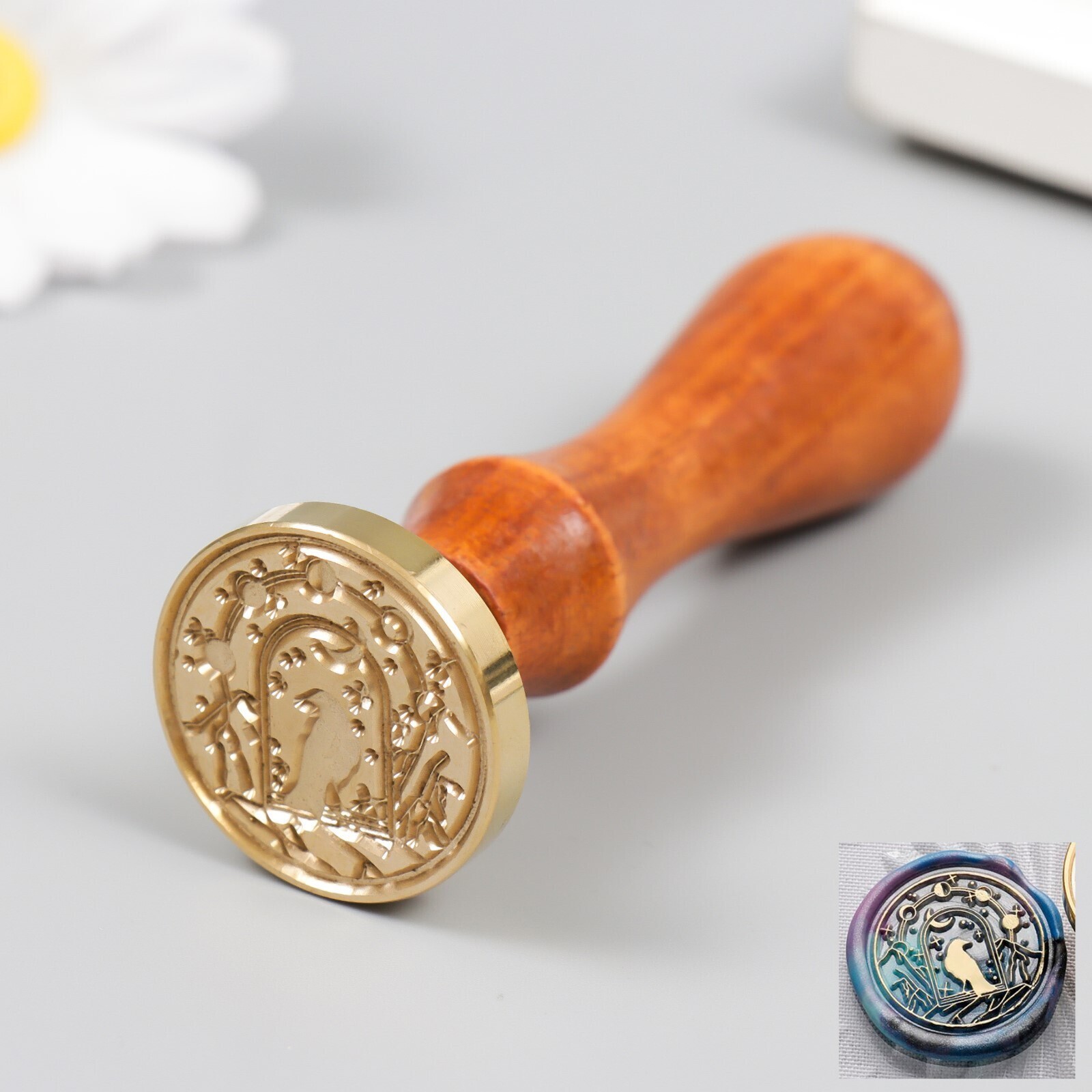 Печать для сургуча с деревянной ручкой "Ворон в арке" 3х3 см