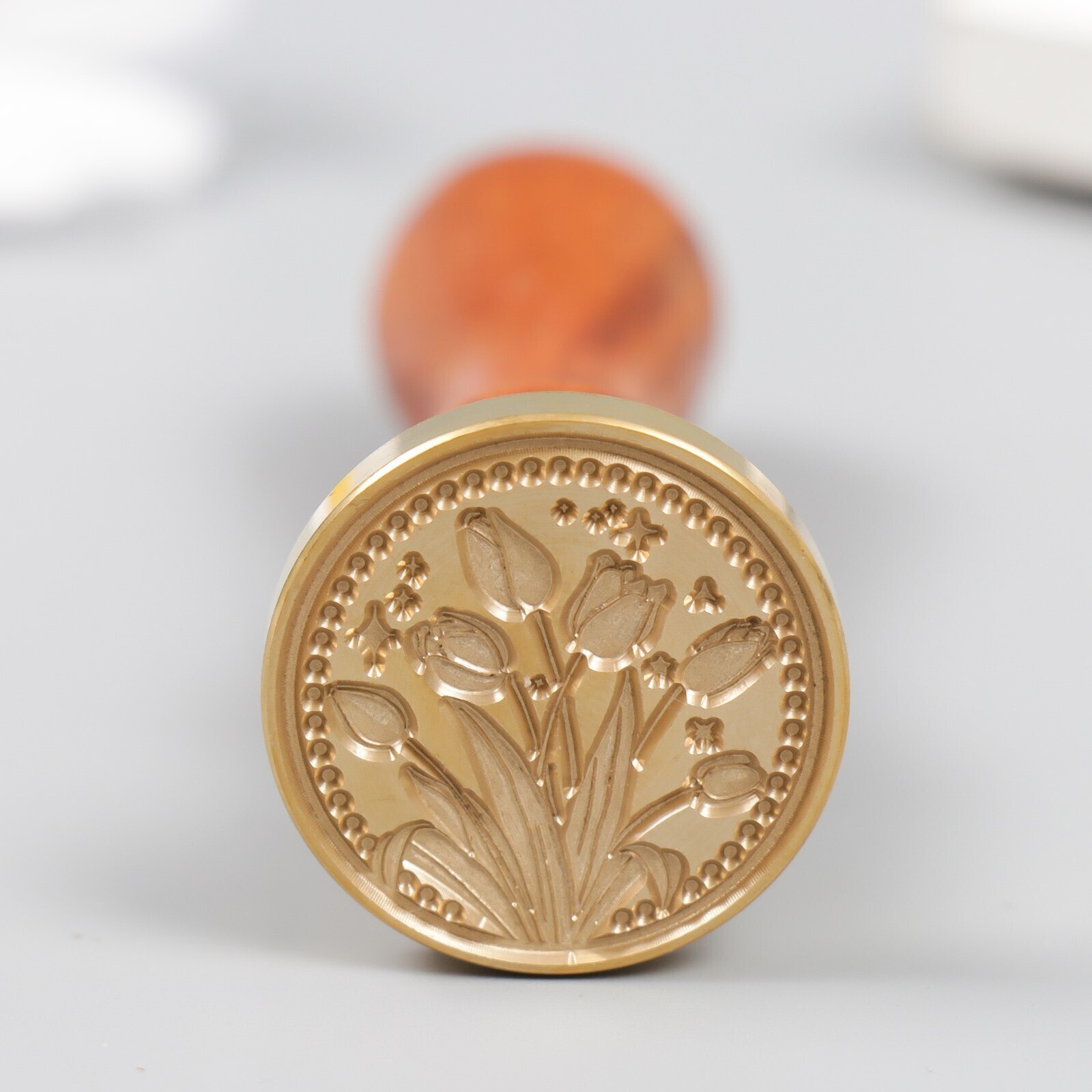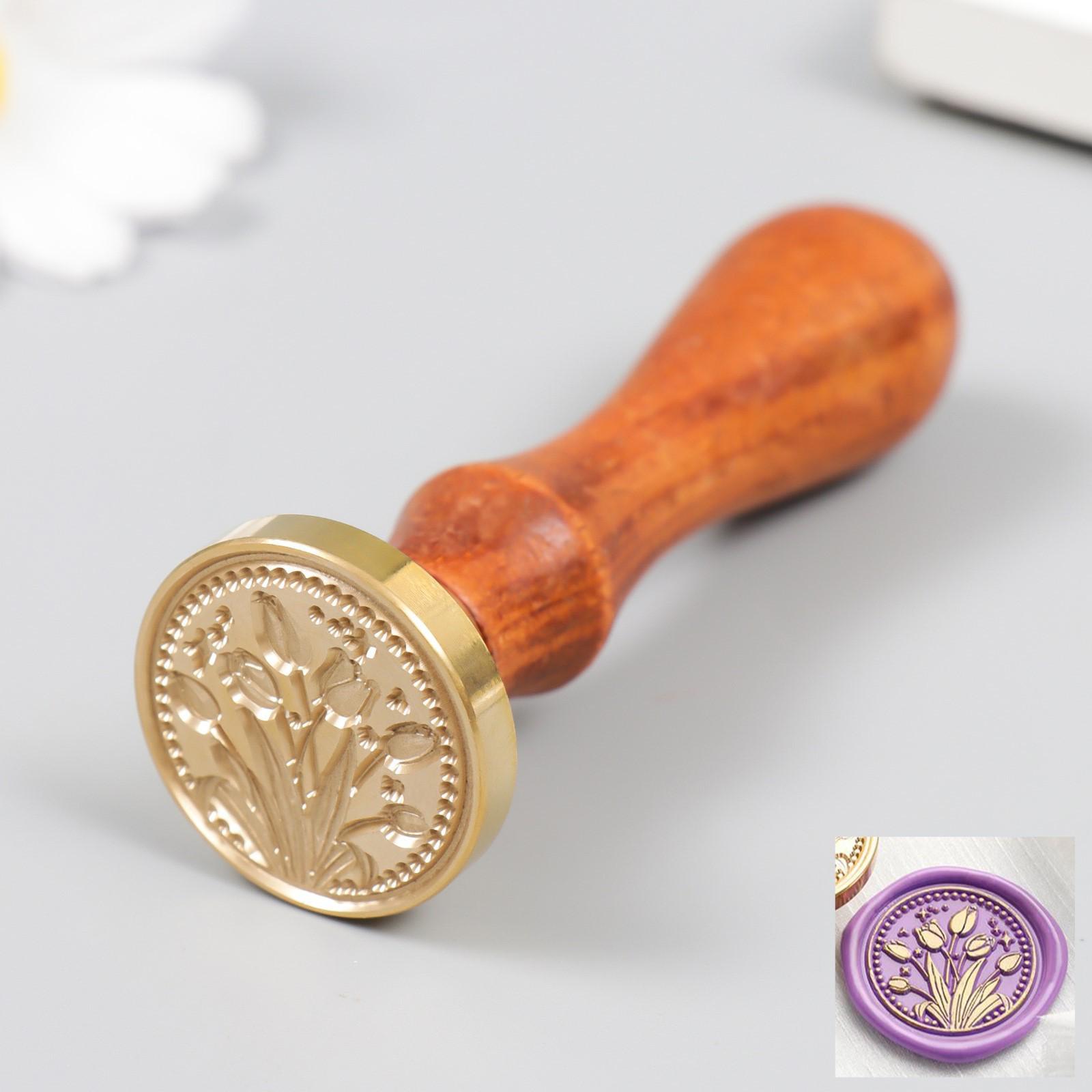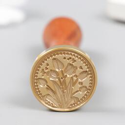Печать для сургуча с деревянной ручкой "Тюльпаны" 3х3 см