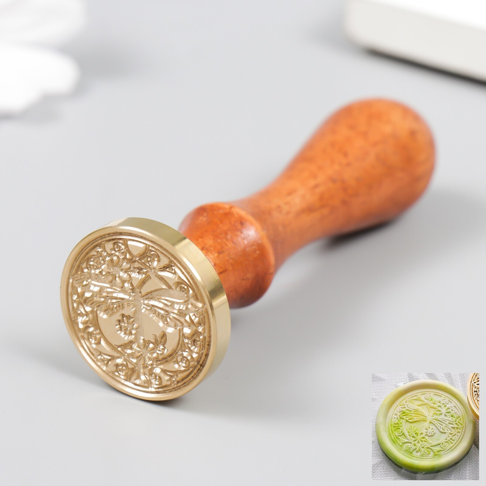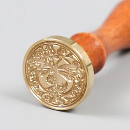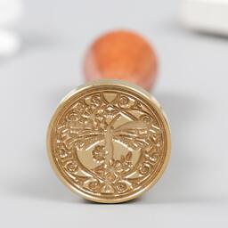 Печать для сургуча с деревянной ручкой "Стрекоза в цветах" 3х3 см
