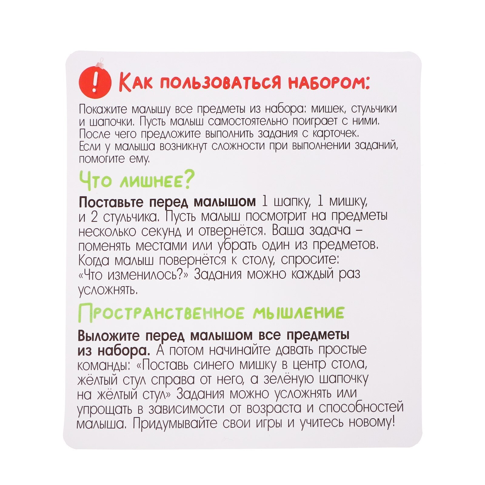 Задания можно усложнять или упрощать в зависимости от возраста и способностей малыша.