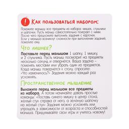 С развивающим набором «Мишки, шапки, стульчики» малыш потренирует навык ориентирования в пространстве, зрительное восприятие, логическое мышление, память и мелкую моторику рук.