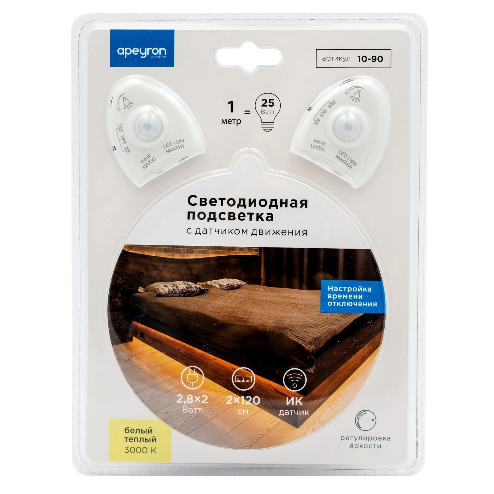 Комплект светодиодной ленты Apeyron Electrics с датчиком движения 2 × 1.2 м, IP65, SMD2835, 30 LED/м, 12 В, 3000К