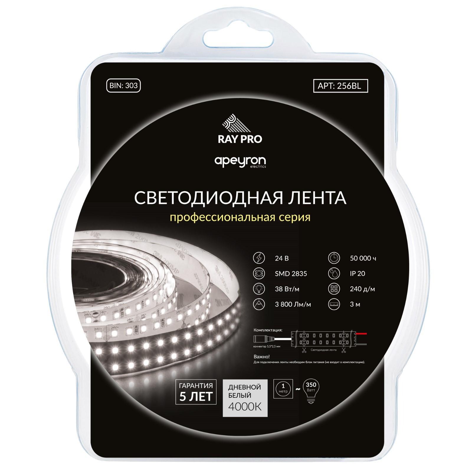 Светодиодная лента Apeyron Electrics 3 м, IP20, SMD2835, 240 LED/м, 38 Вт/м, 24 В, 4000К
