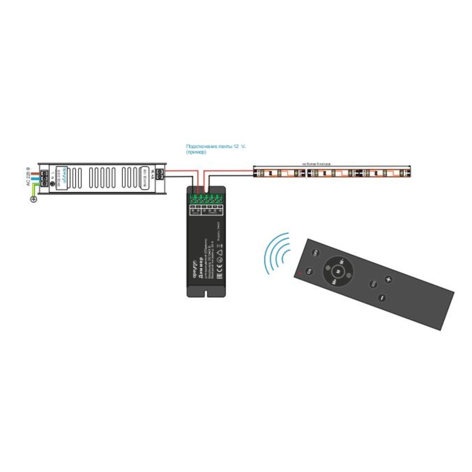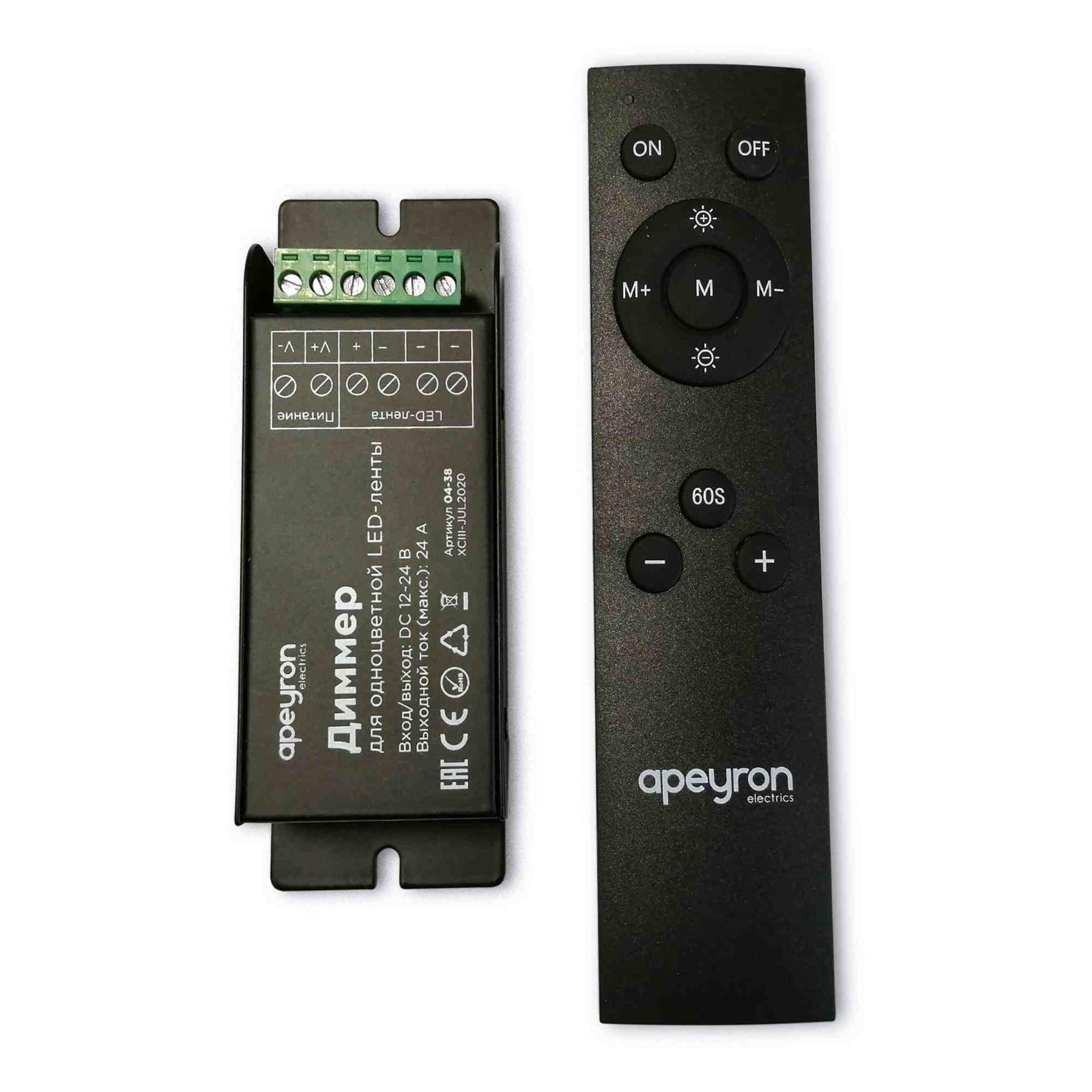 Диммер Apeyron electrics 12/24В, 288/576Вт, 3 канала х 8А, IP20, пульт, 117х42х24 мм
