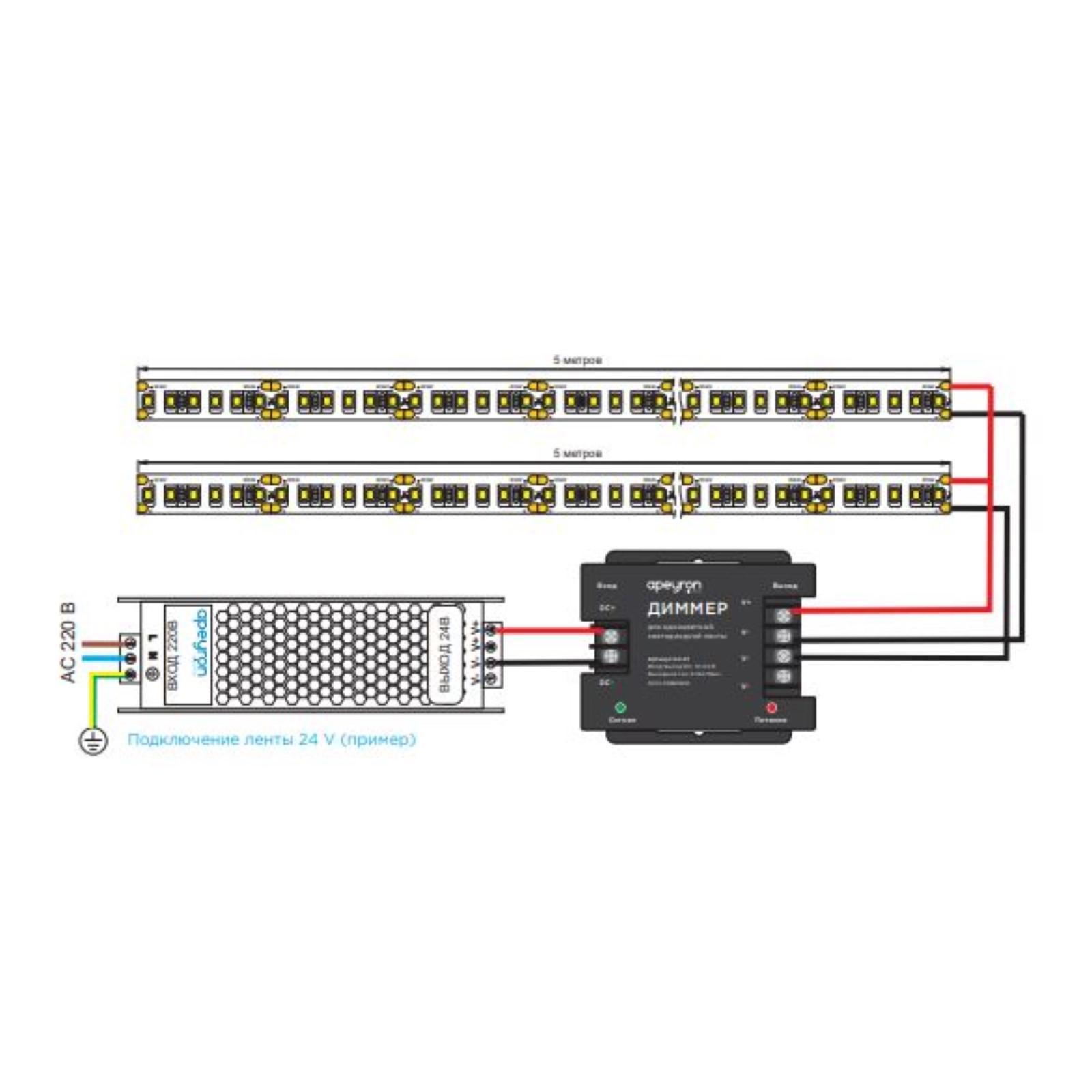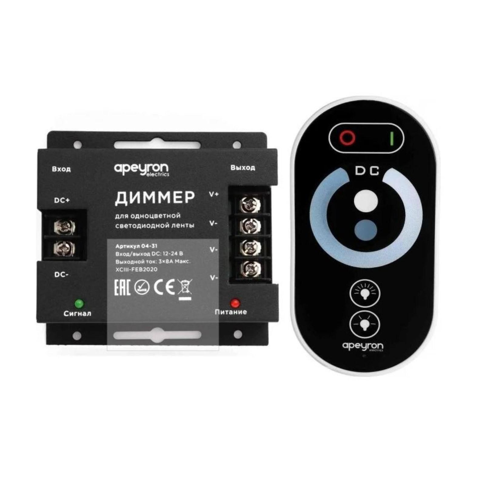 Диммер Apeyron electrics 12/24В, 288/576Вт, пульт, для монохромной св. ленты, 83x79x33 мм