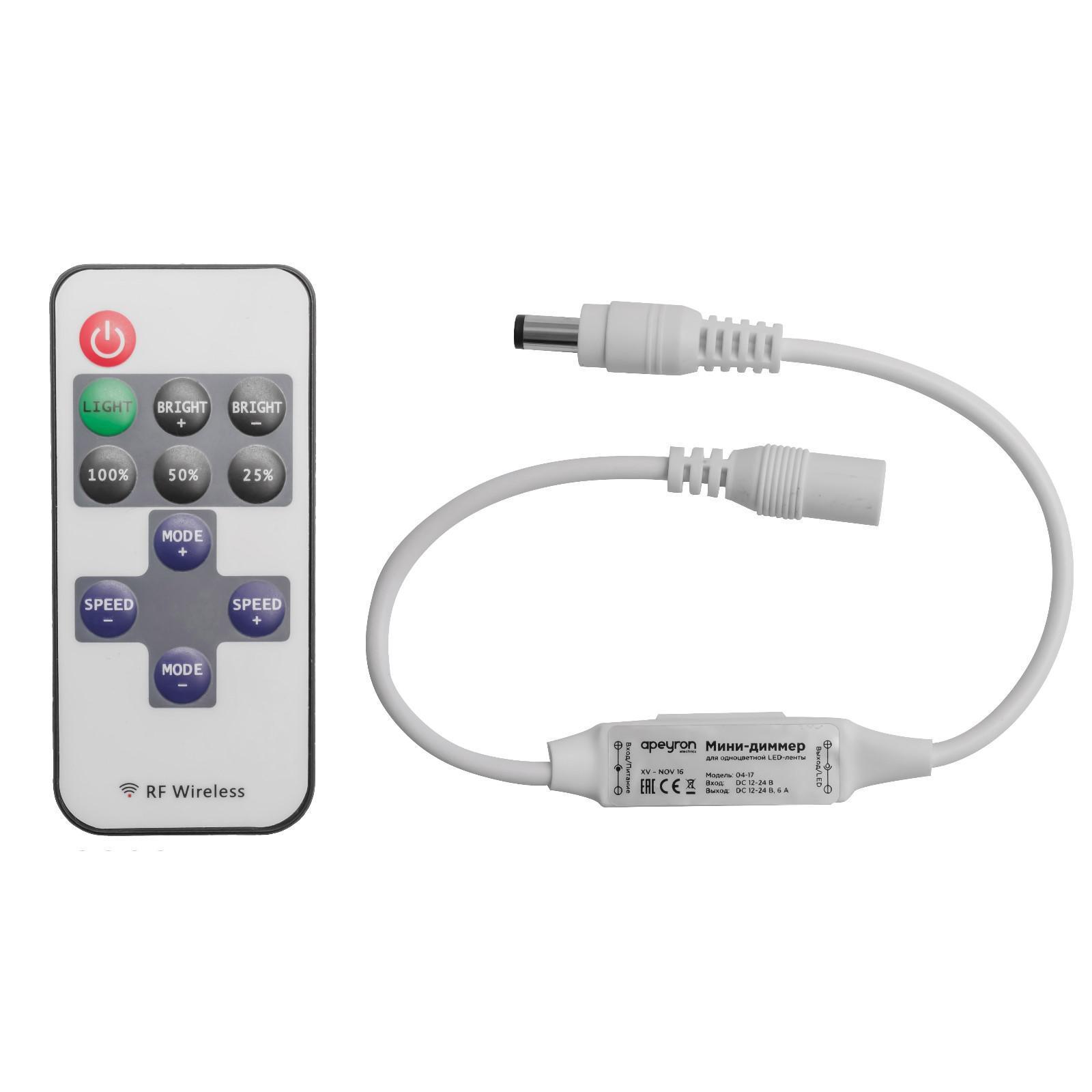 Мини-диммер Apeyron electrics 12В, 72Вт, пульт, для монохромной св. ленты, 40x12x5 мм