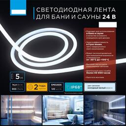 Светодиодная лента для сауны Apeyron Electrics 5 м, IP68, SMD2835, 120 LED/м, 14.4 Вт/м, 24 В, 6000К