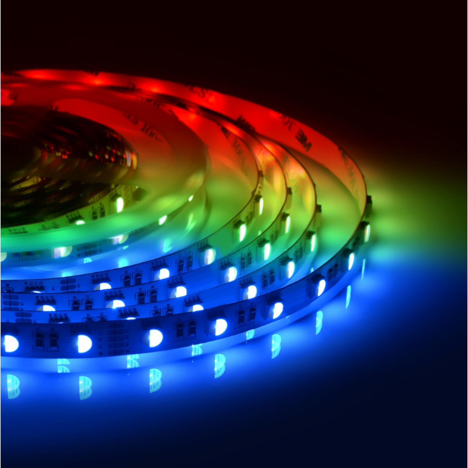 В состав готового комплекта входит 5 метров светодиодной ленты, которая работает от постоянного тока с напряжением 12В. Благодаря светодиодам smd 5050 излучающим световой поток равный 700 Лм/м лента является решением для организации основного освещения и ярких декоративных подсветок. Она подойдет для создания основного освещения на базе многоуровневых потолков, а также будет отличным выбором для освещения торгового оборудования или требующих большой яркости рекламных вывесок. По сравнению с лампами накаливания светодиодная лента эквивалентна лампам мощностью 70 Вт. Данная модель светодиодной ленты является многоцветной. Каждый светодиод такой ленты имеет 3 базовых цвета: синий, зеленый и красный. В зависимости от используемого контроллера можно получить до 256 различных оттенков свечения.Также в состав комплекта входит адаптер питания с вилкой в розетку на корпусе, проводом с выключателем и коннектором для подключения светодиодной ленты, с другой стороны.