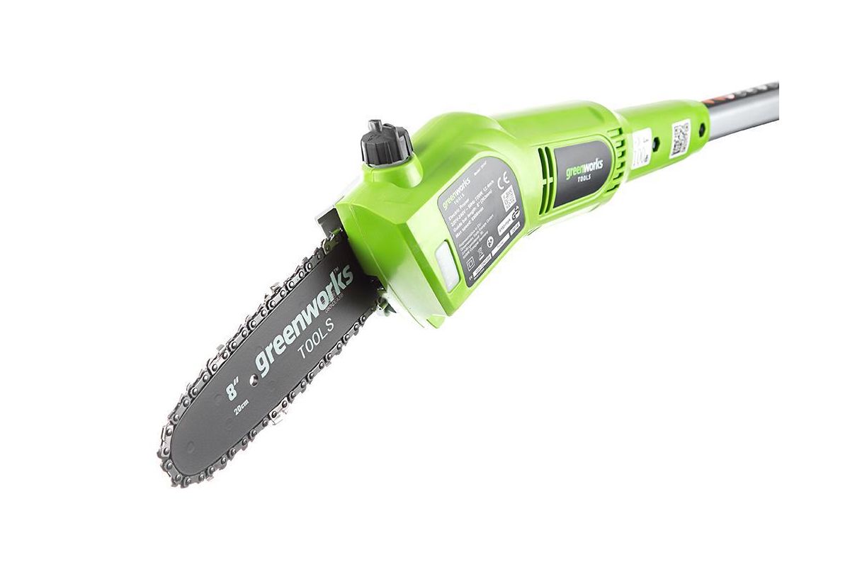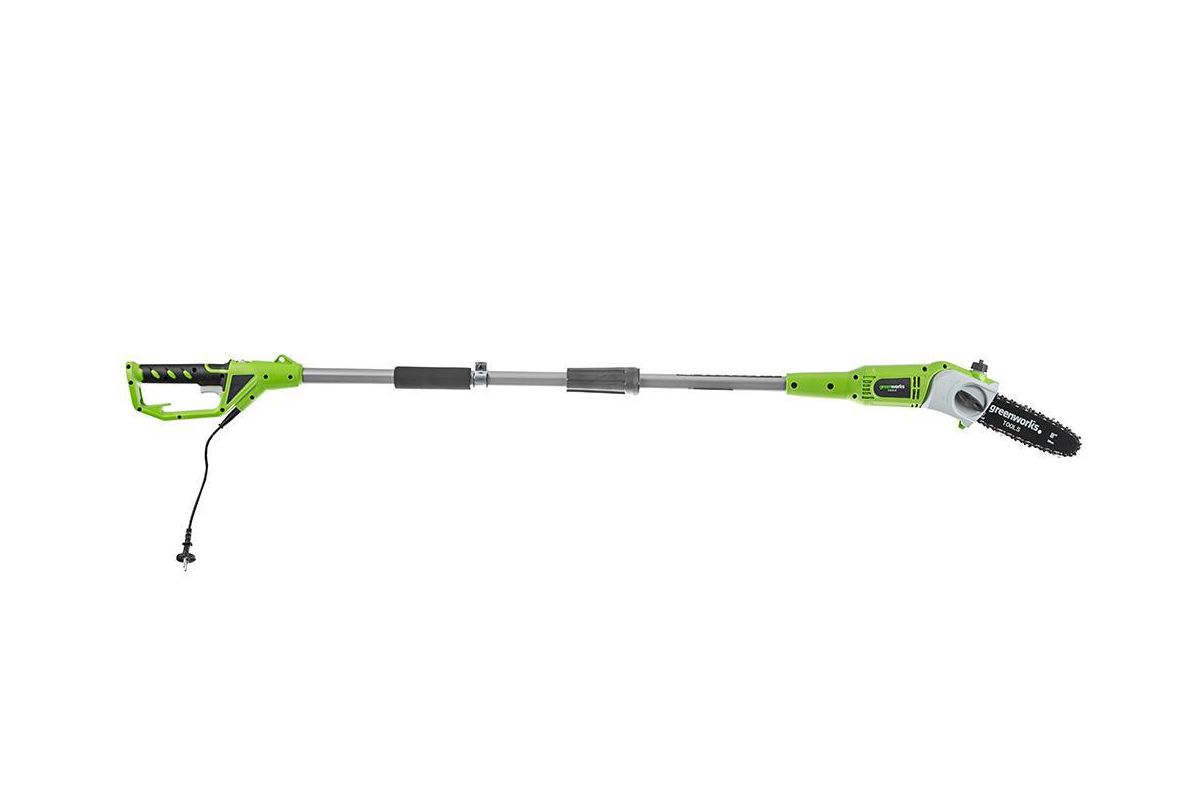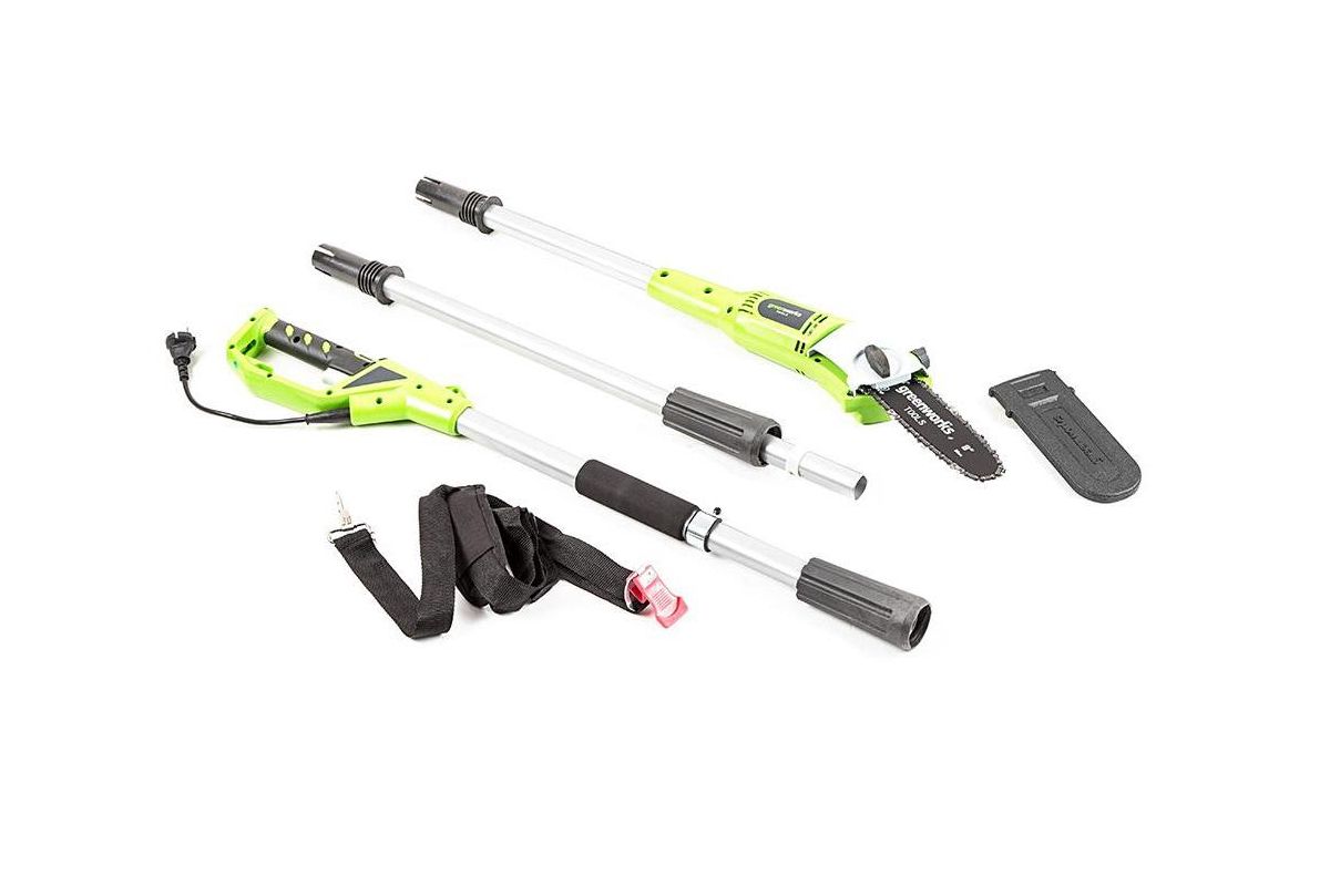 GREENWORKS GPS7220 (20147) – электрический высоторез для дачи, с его помощью подрезают сучки и ветки деревьев. Работает от сети 220 В.