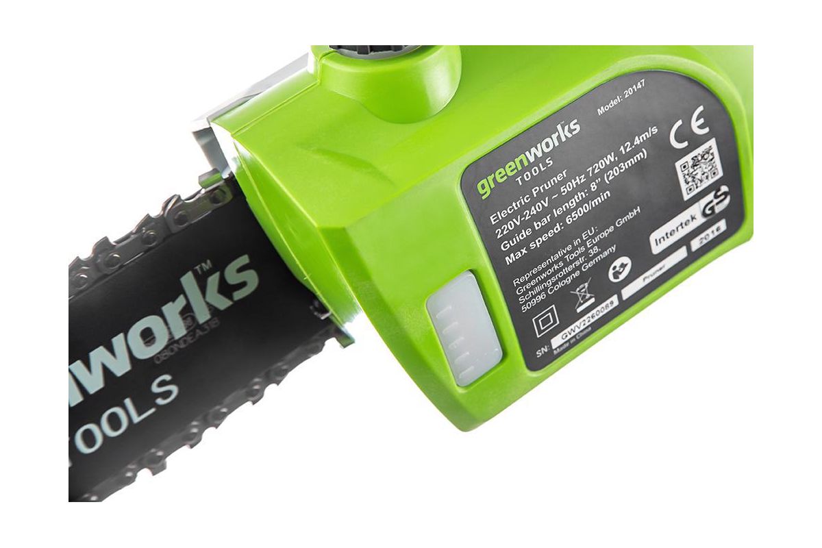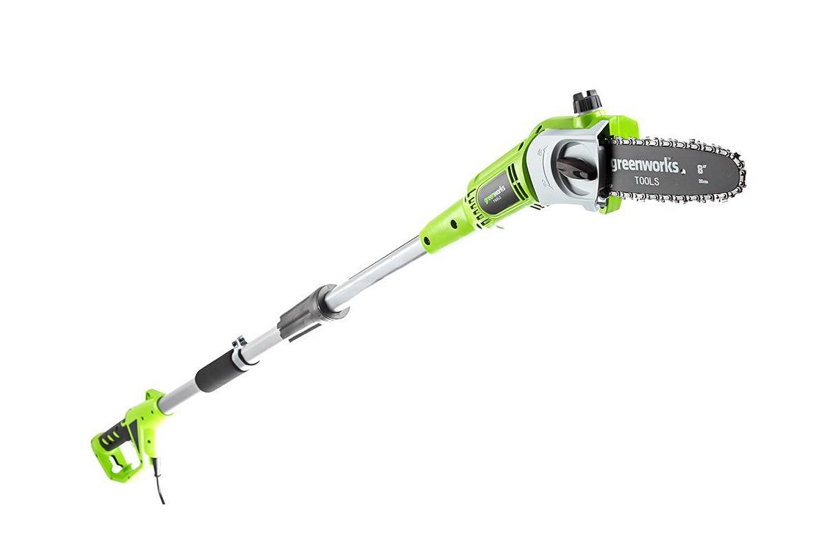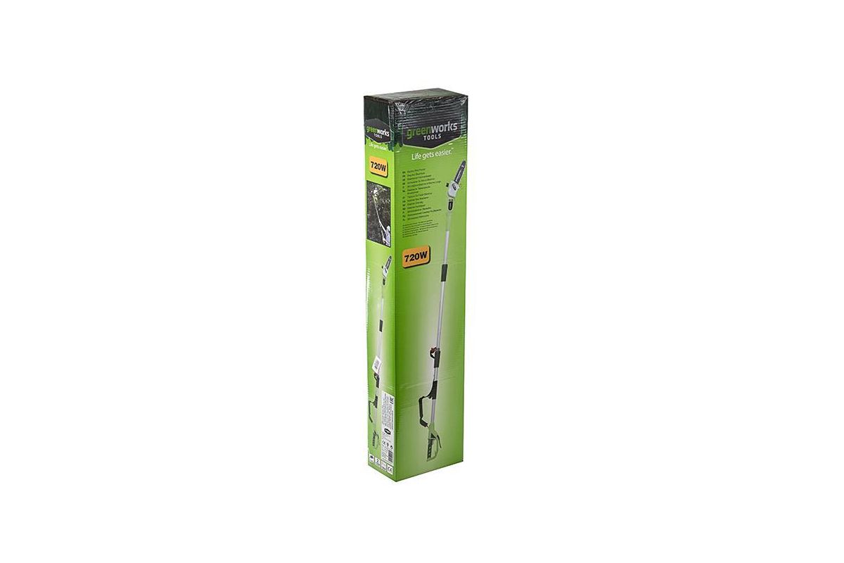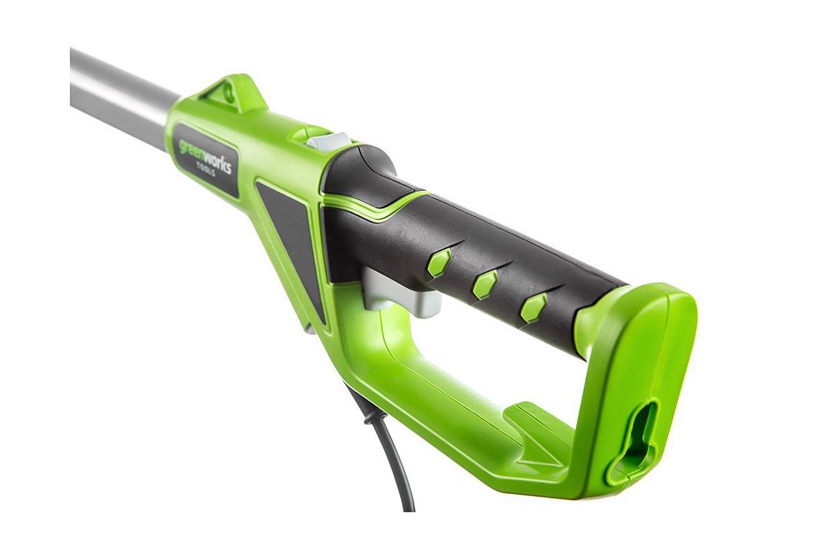 GREENWORKS GPS7220 (20147) – электрический высоторез для дачи, с его помощью подрезают сучки и ветки деревьев. Работает от сети 220 В.