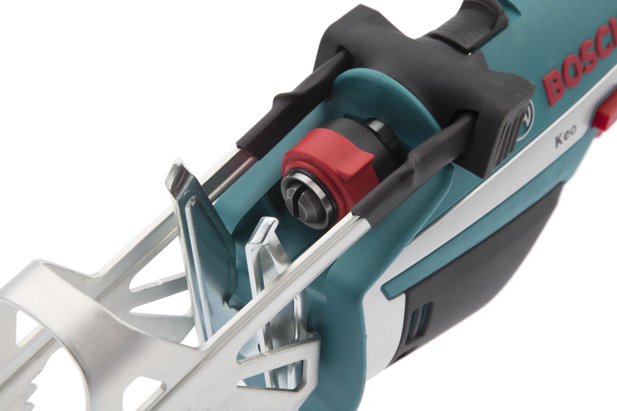 BOSCH KEO (0.600.861.900) – аккумуляторная сабельная пила для подрезки деревьев и срезания толстых веток. 15-ти сантиметровое пильное полотно обеспечивает высокую эффективность. Среди особенностей: легкий и мощный аккумулятор, индикатор заряда и специальная технология SDS для быстрой смены пилки.