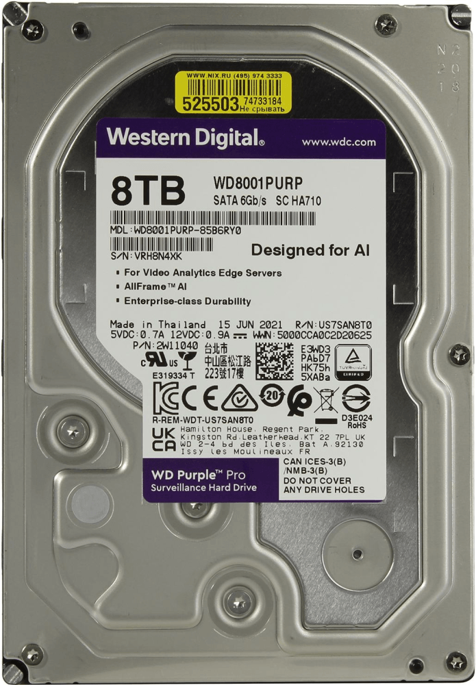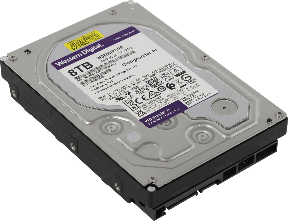 Жесткий диск Western Digital HDD SATA-III 8Тb Purple Pro WD8001PURA, 7200 rpm, 256MB buffer (DV&NVR + AI), 1 year