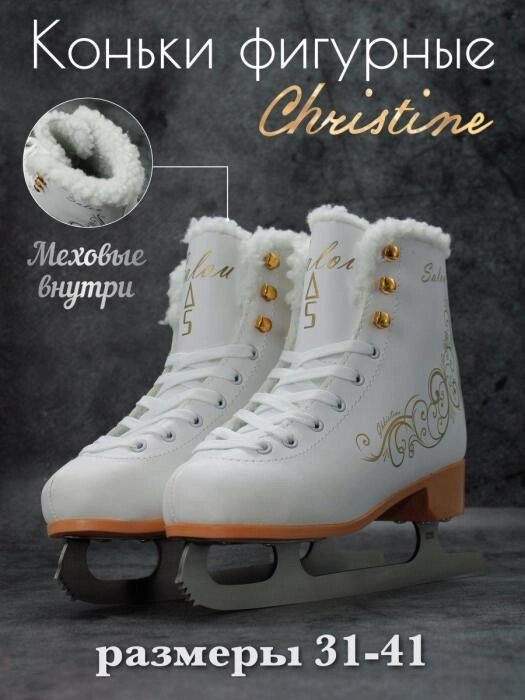 Женские фигурные коньки детские для девочки с мехом белые 31-41 размер