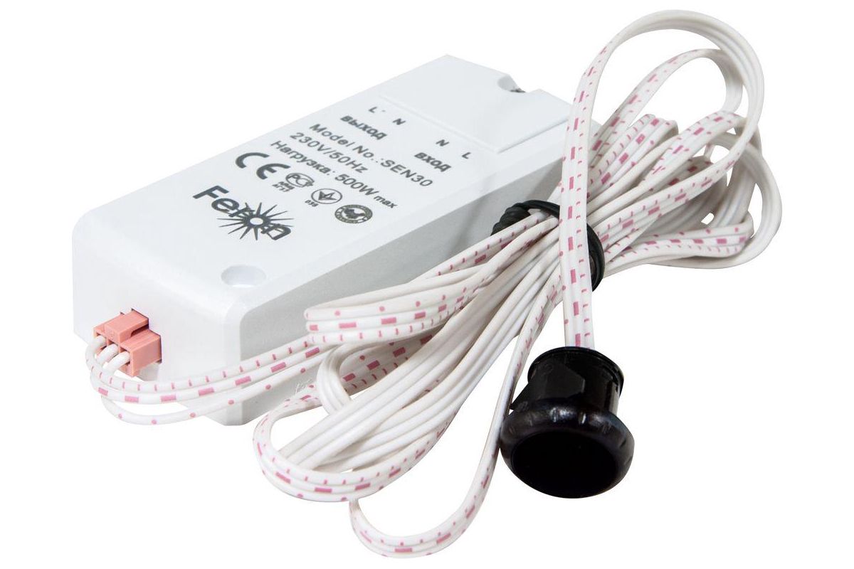 Датчик движения и освещенности FERON 22068 230V 500W 5-8см 30° белый с 1.5м кабелем SEN30 Датчик движения