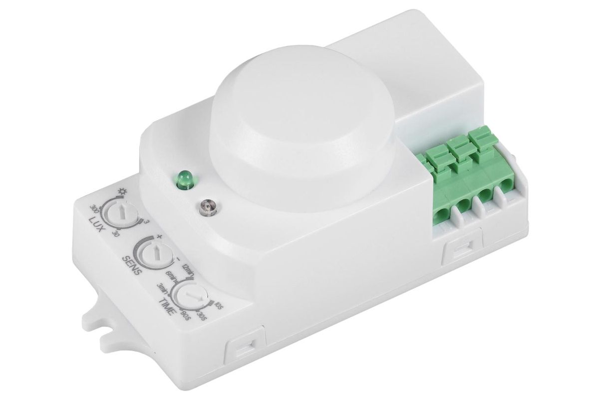 Детектор движения ДД-МВ 201 1200Вт 360град. 8М IP20 бел. IEK LDD11-201MB-1200-001 Микроволновый датчик движения излучает высокочастотные электромагнитные волны (частота волн обычно она составляет 5,8ГГц), которые отражаются от окружающих объектов и регистрируются сенсором. В случае обнаружения малейших изменений электромагнитных волн, микропроцессор датчика приводит в действие заданные настройки.