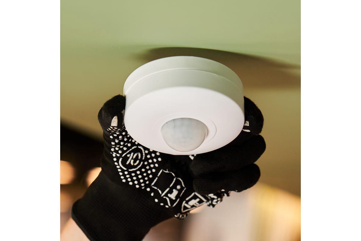 Потолочный датчик движения позволяет значительно экономить электроэнергию благодаря встроенному сенсору включения и выключения освещения. Датчик реагирует на тепло излучаемое объектом. Угол обзора по горизонтали и вертикали составляет 120 и 360 градусов соответственно.