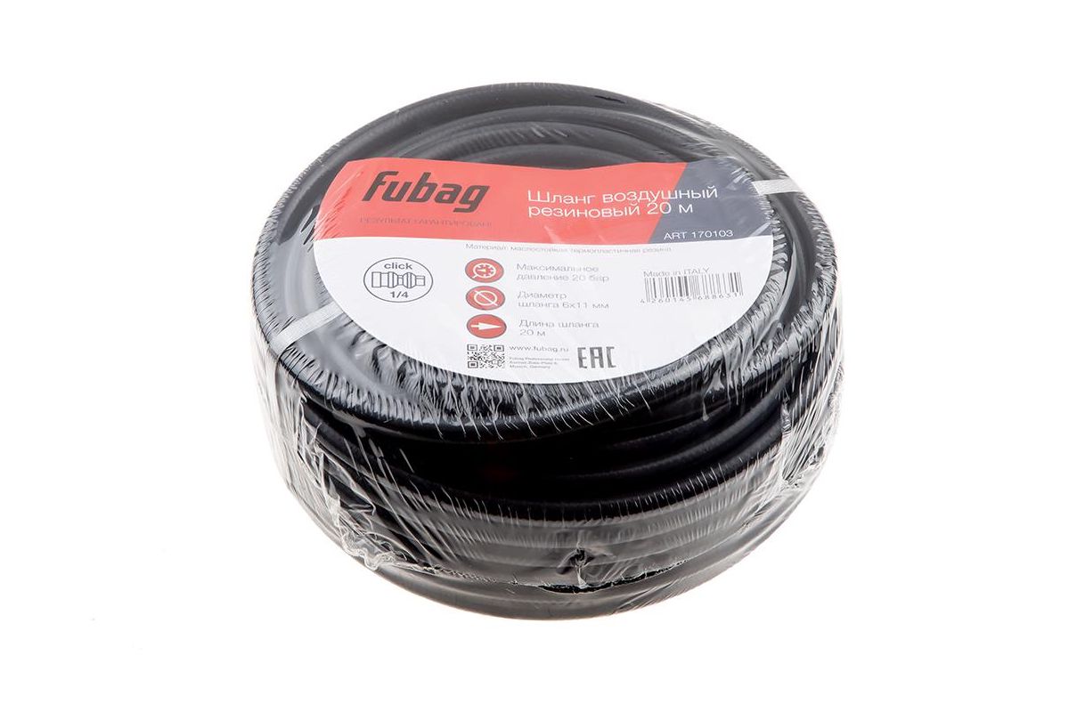 Шланг FUBAG 170103 с фитингами рапид маслостойкая термопластичная резина 20бар 6x11мм 20м