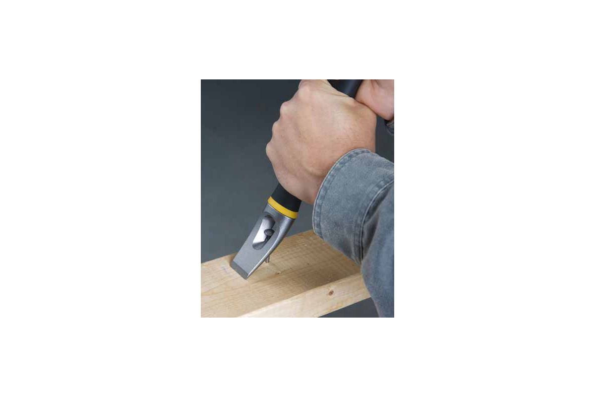 Конструкция из углеродистой стали для высокой прочности. отпущенная сталь для предотвращения скалывания. Мягкое покрытие с текстурой для высокого комфорта и надежного контроля инструмента, даже в условиях повышенной влажности. Зазубренные губки для захватывания пиломатериалов широко распространенных размеров. Для извлечения гвоздей используется отверстие специальной формы.