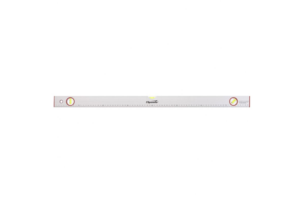 Корпус уровня изготовлен из прямоугольного анодированного алюминиевого профиля. Вес погонного метра – 0,17 кг. Имеет анодированное покрытие. Пластмассовые заглушки на обоих концах. Модель имеет три акриловых глазка для проверки отклонений по горизонтали, вертикали и под углом 45 градусов. Точность измерений – 1 мм м (0,057 градуса).