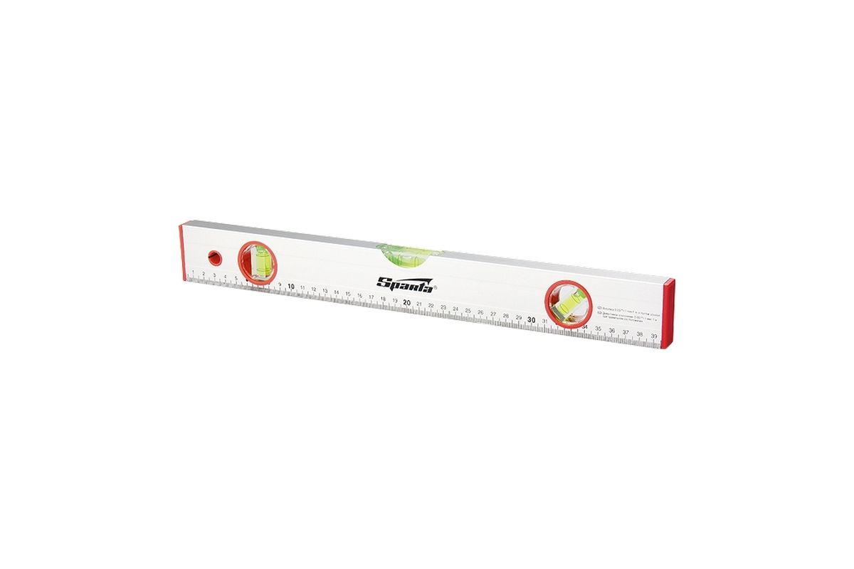 Корпус уровня изготовлен из прямоугольного анодированного алюминиевого профиля. Вес погонного метра – 0,17 кг. Имеет анодированное покрытие. Пластмассовые заглушки на обоих концах. Модель имеет три акриловых глазка для проверки отклонений по горизонтали, вертикали и под углом 45 градусов. Точность измерений – 1 мм м (0,057 градуса).