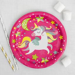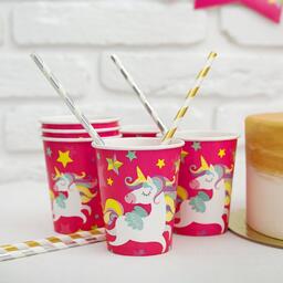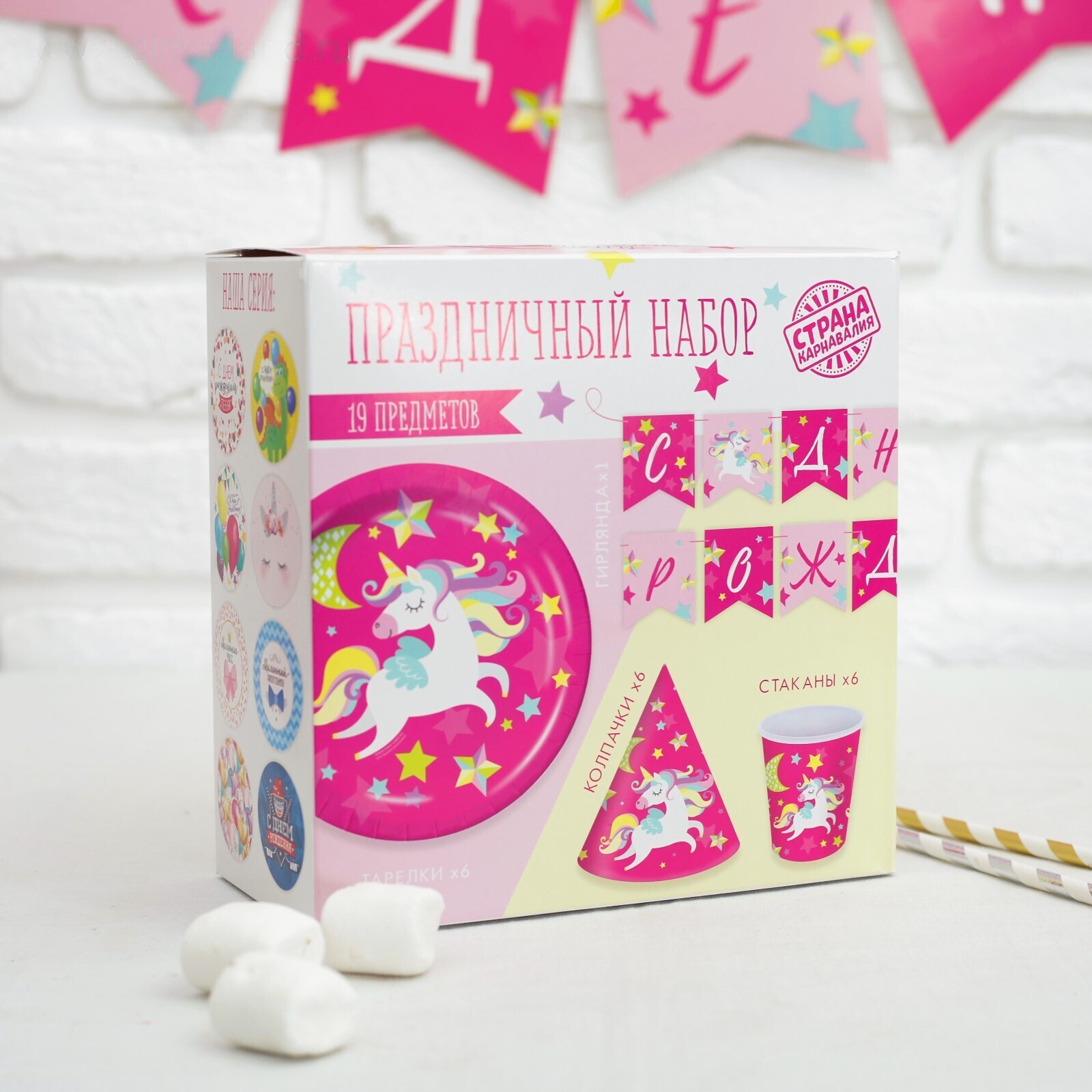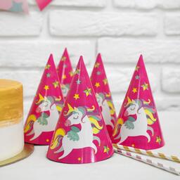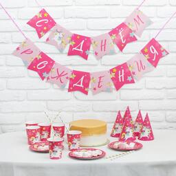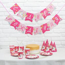 Набор бумажной посуды «С днём рождения. Единорожек», 6 тарелок, 6 стаканов, 6 колпачков, 1 гирлянда