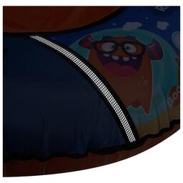 Дно тюбинга изготовлено из автотента ПВХ 610, что гарантирует долгий срок службы и обеспечивает отличное скольжение. Тюбинг оснащён безопасными эргономичными ручками и молнией для быстрого доступа к камере. Он имеет закрытую сердцевину, что исключает попадание снега внутрь. Фактический размер накачанного тюбинга зависит от температуры внешней среды и давления в камере. Для тюбинга подойдёт камера 16 дюймов. Предназначен для детей от 3 лет.
