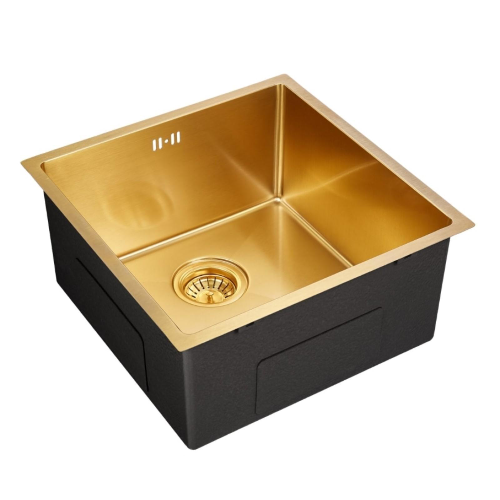 Мойка кухонная EMAR EMB-113 PVD Nano Golden, врезная, 450х450х230 мм, квадратная, золото