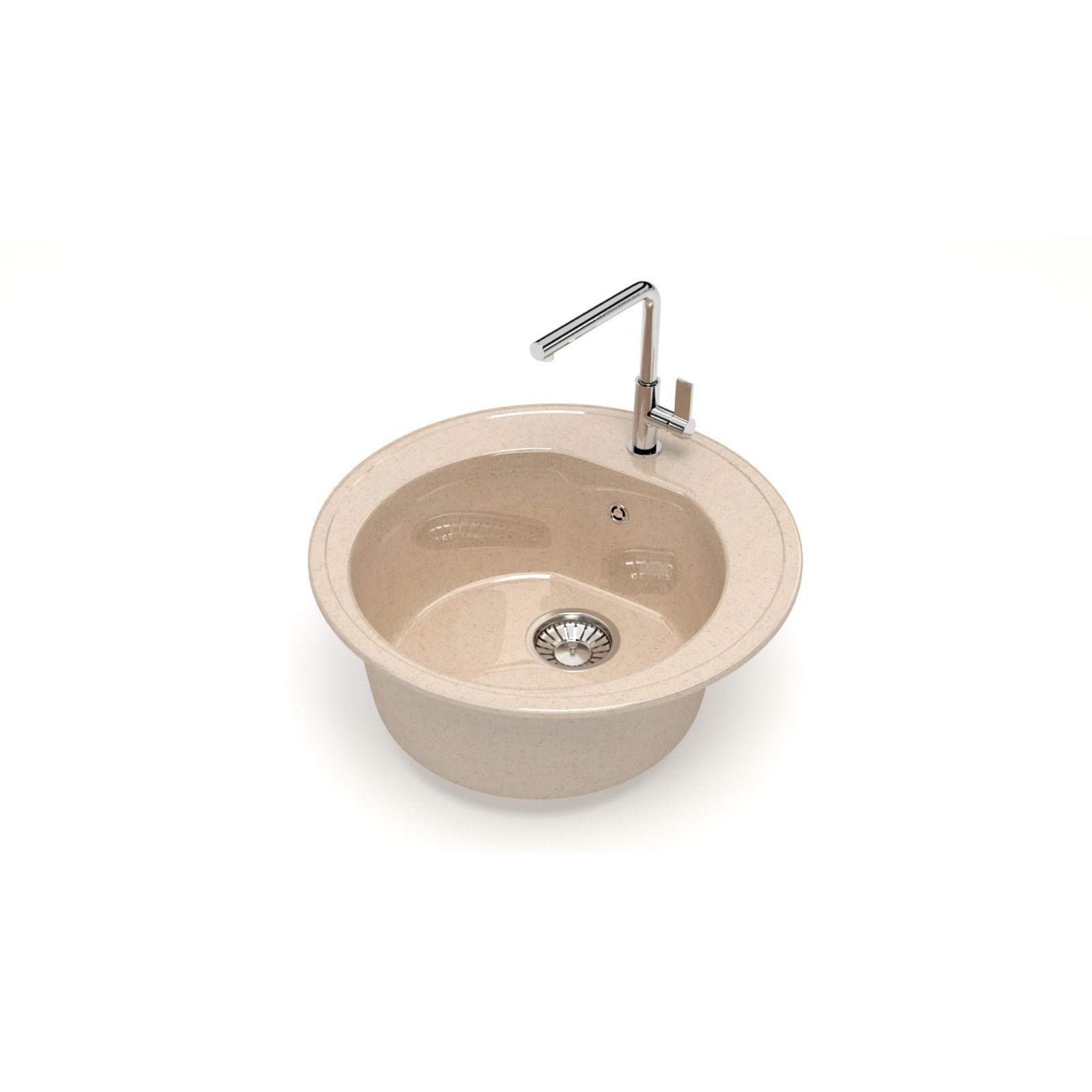 Мойка кухонная из камня Glanz Черая L3G39, 510x510x191 мм, глянцевая, врезная, слон. кость