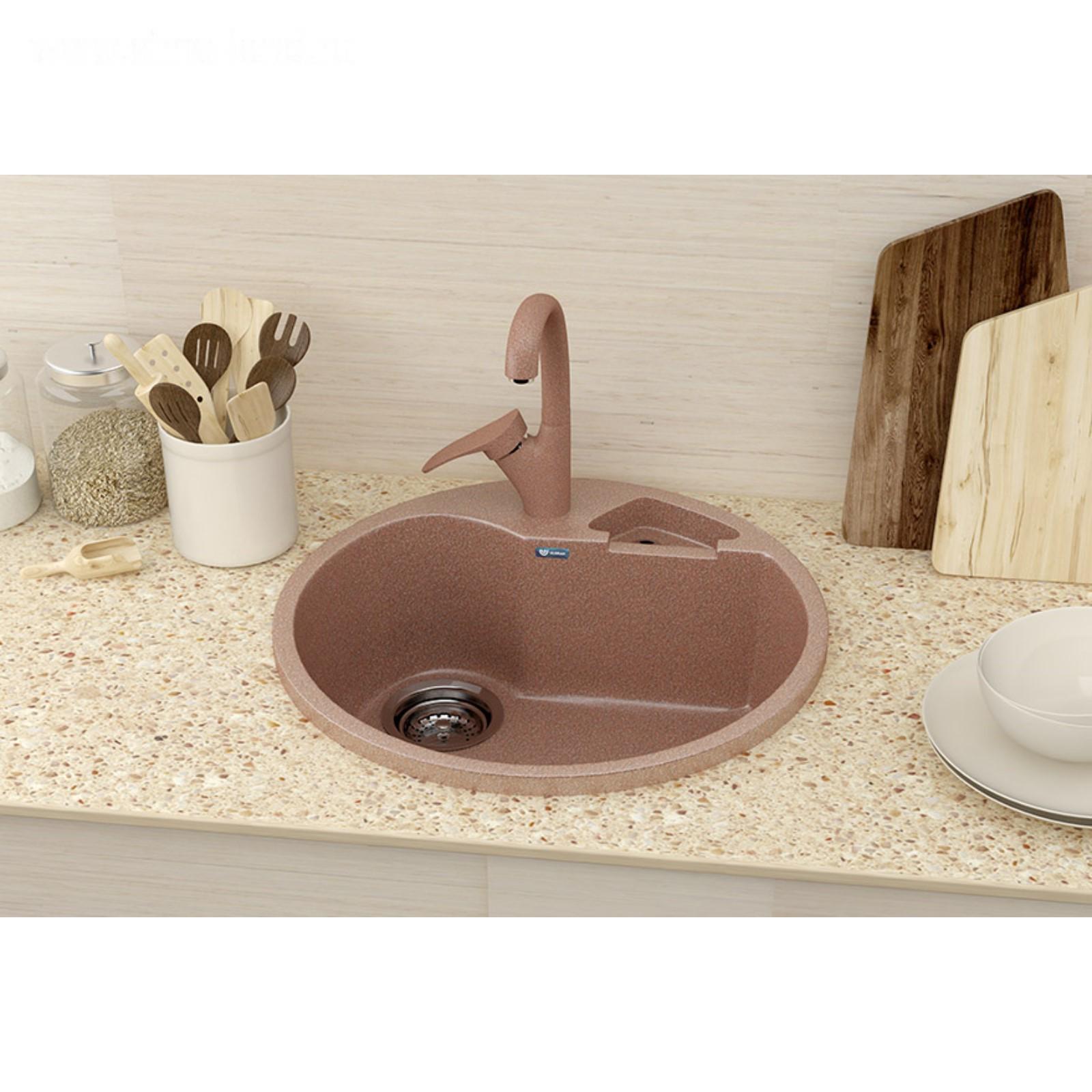 Круглая кухонная мойка U108-302 с отверстием под смеситель изготовлена из искусственного камня. Материал на 80 % состоит из натурального мрамора и на 20 % из полимеров.