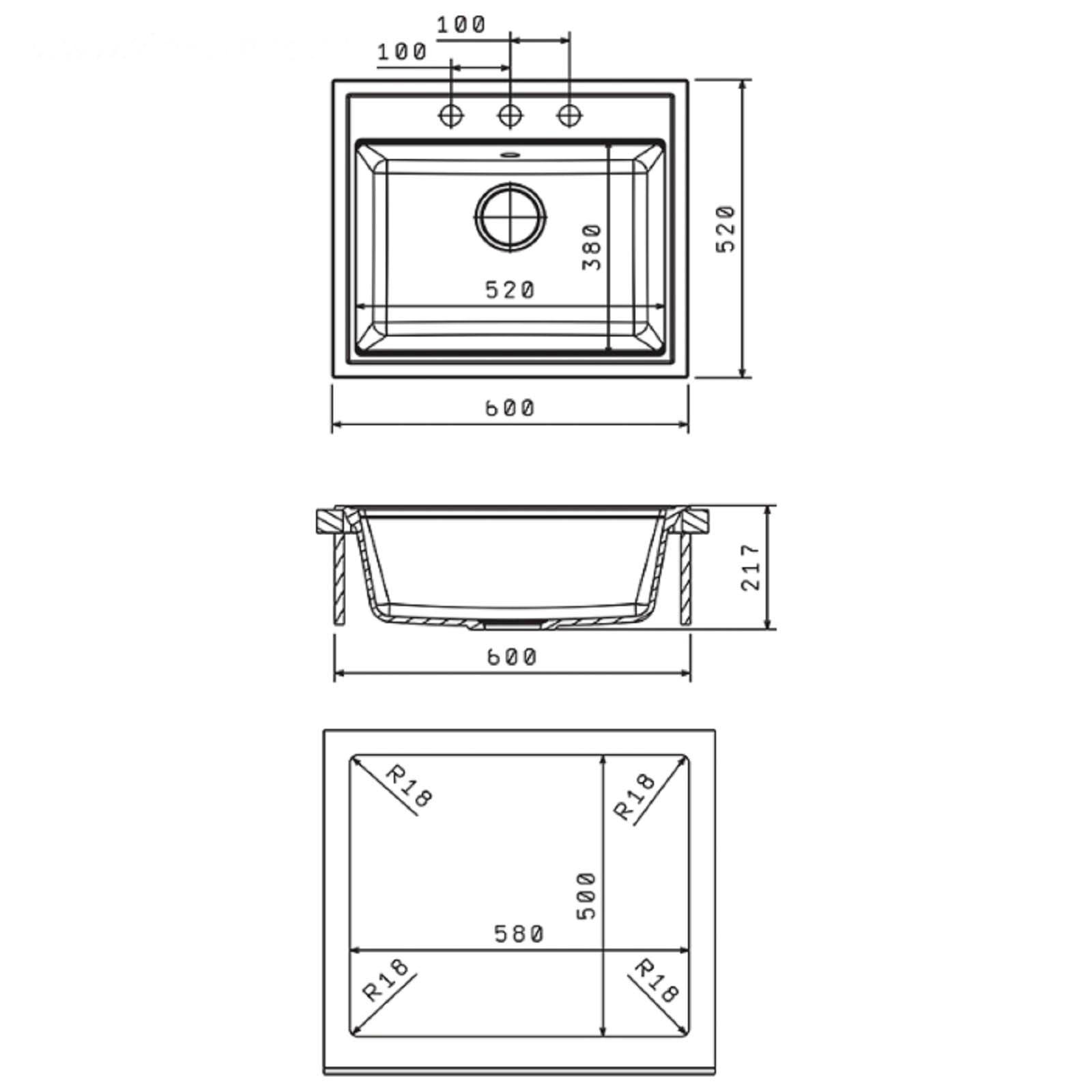 Мойка кухонная из камня Florentina «Липси-600», 600х520 мм, цвет жасмин