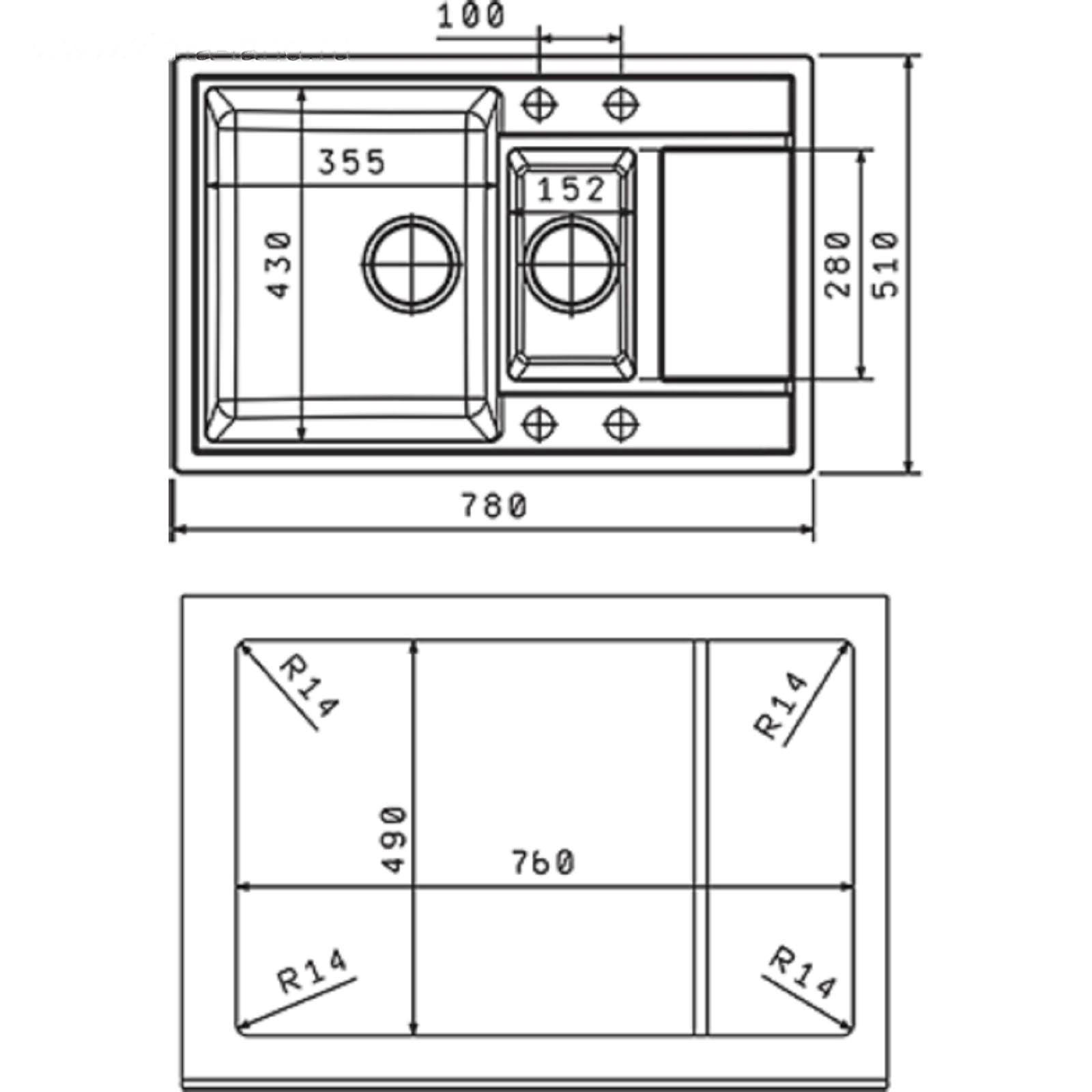 • Ширина чаши, мм 152, 355