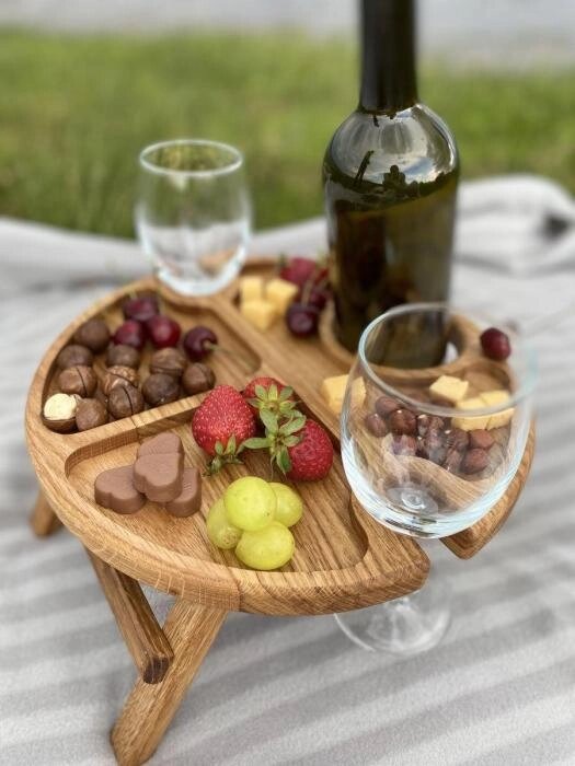 Винный столик VS33 деревянный поднос на двоих для вина завтрака менажница из дуба