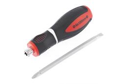 Отвертка имеет двухкомпонентную противоскользящую рукоятку эргономичной формы, оснащена двусторонним стержнем под крепеж с профилем PH№2 и SL 6 мм, изготовленным из хромомолибденовой стали.