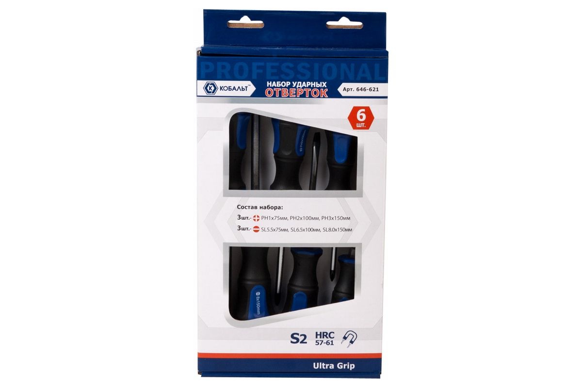 Набор отверток КОБАЛЬТ 646-621 ударных Ultra Grip S2 6шт коробка