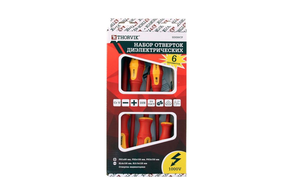 Набор отверток THORVIK SDIS6CP стержневых диэлектрических VDE, 6 предметов