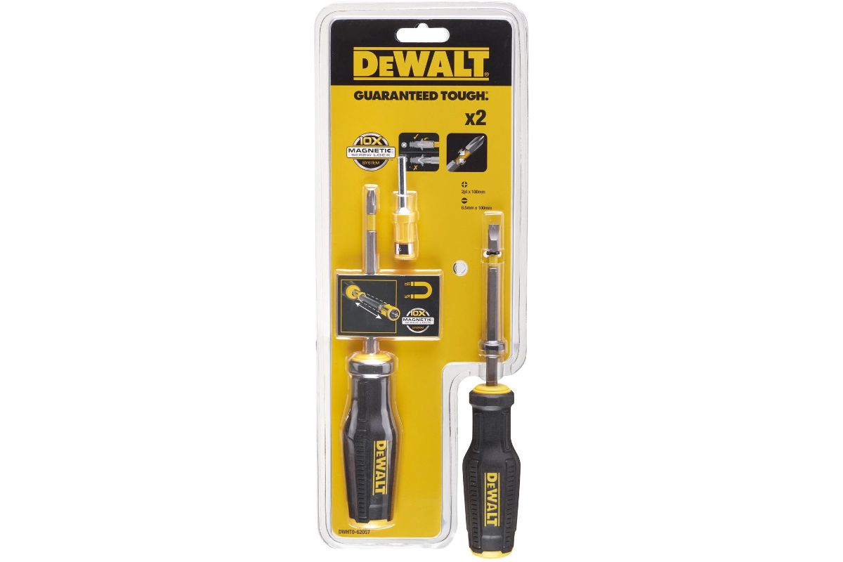 DEWALT DWHT0-62057 – набор отвёрток для слесарных и монтажных работ, подходит для работы с разным видом крепежа. Включает в себя 2 предмета. Длина жала 100 мм. Пригодится дома, в мастерской, гараже или на даче.