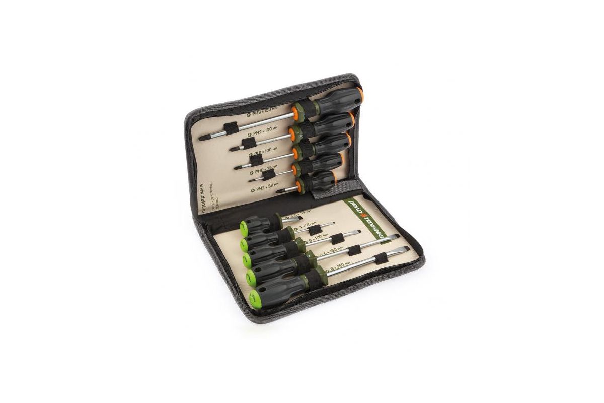 Отвертки PH (крест): РН0х75 мм, PH1х100 мм, РН2х38 мм, PH2х100 мм, РН3х150 мм;