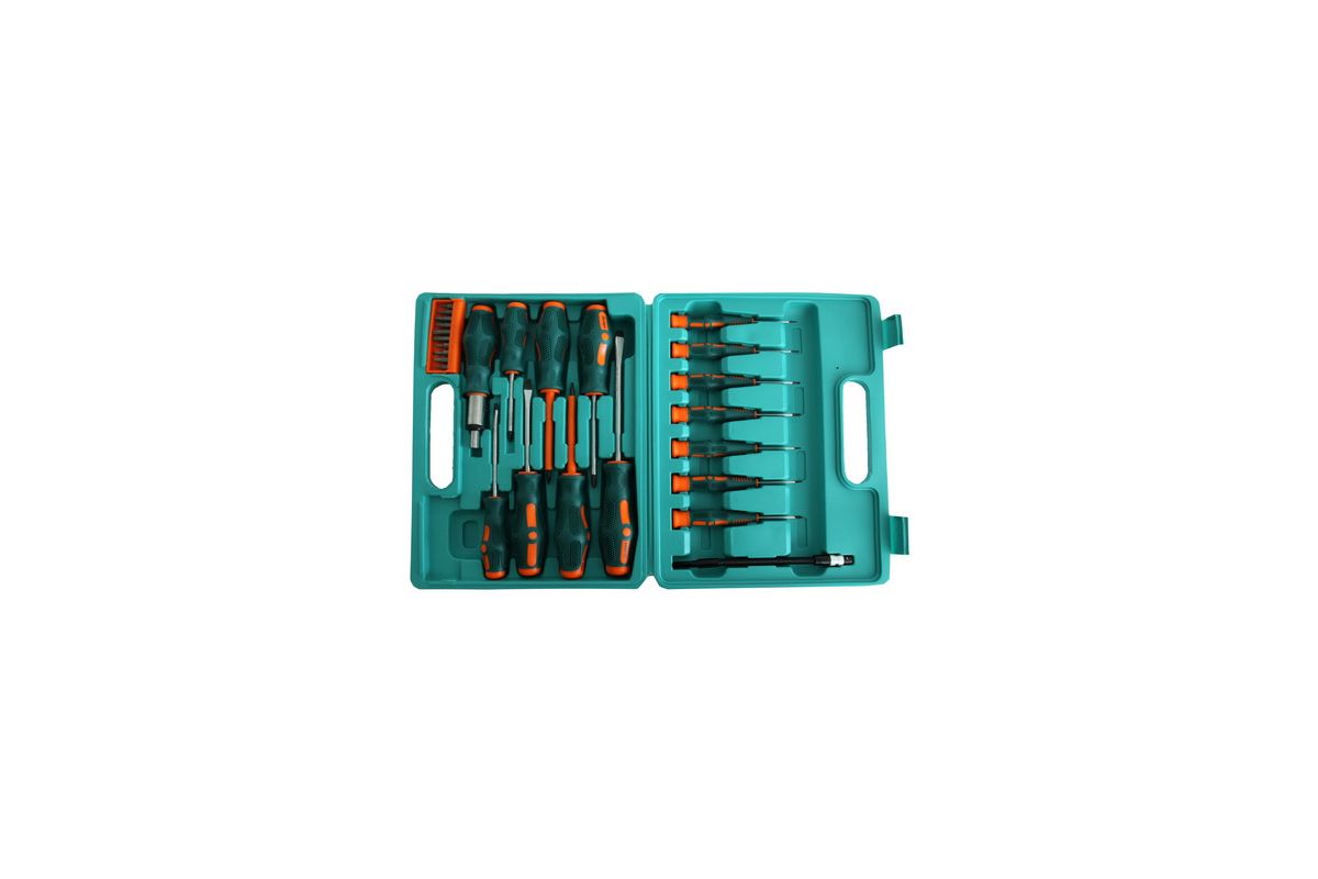 В комплект входит трещоточная отвертка и набор отверток для точной механики.