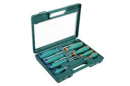 Отвертки из профессионального набора JONNESWAY D71PP08S способны выдерживать значительные нагрузки благодаря поэтапной закалке рабочего профиля. В набор входят 4 шлицевых отвертки с различной шириной и длиной жала - 4х80, 6.6х150, 5.5х125, 6.5х38 мм. Крестовые отвертки представлены типоразмерами 2х38, 1х80, 2х100, 3х150 мм. Габариты пластикового кейса: 305x233x57 мм, вес с содержимым: 1,15 кг.