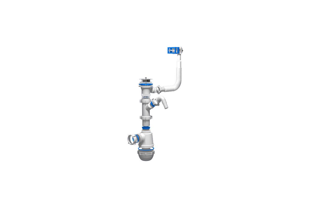 Сифон АНИ ПЛАСТ 15272 40мм ГРОТ с носиком и переливом с гайкой Сифон 40, ГРОТ с нос. и переливом, (с гайкой),