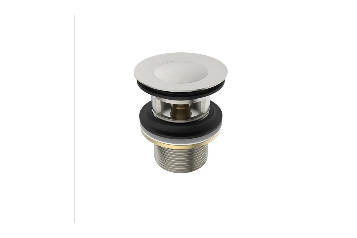 Полуавтоматический выпуск для умывальника универсален и совместим с умывальниками любого типа (с переливом и без). Благодаря стильному матовому покрытию сатинового оттенка подойдет к смесителям в тон. Такое покрытие устойчиво к появлению коррозии, разводов и отпечатков пальцев. Чтобы перекрыть или открыть слив воды, достаточно одного нажатия на кнопку в центре выпуска.